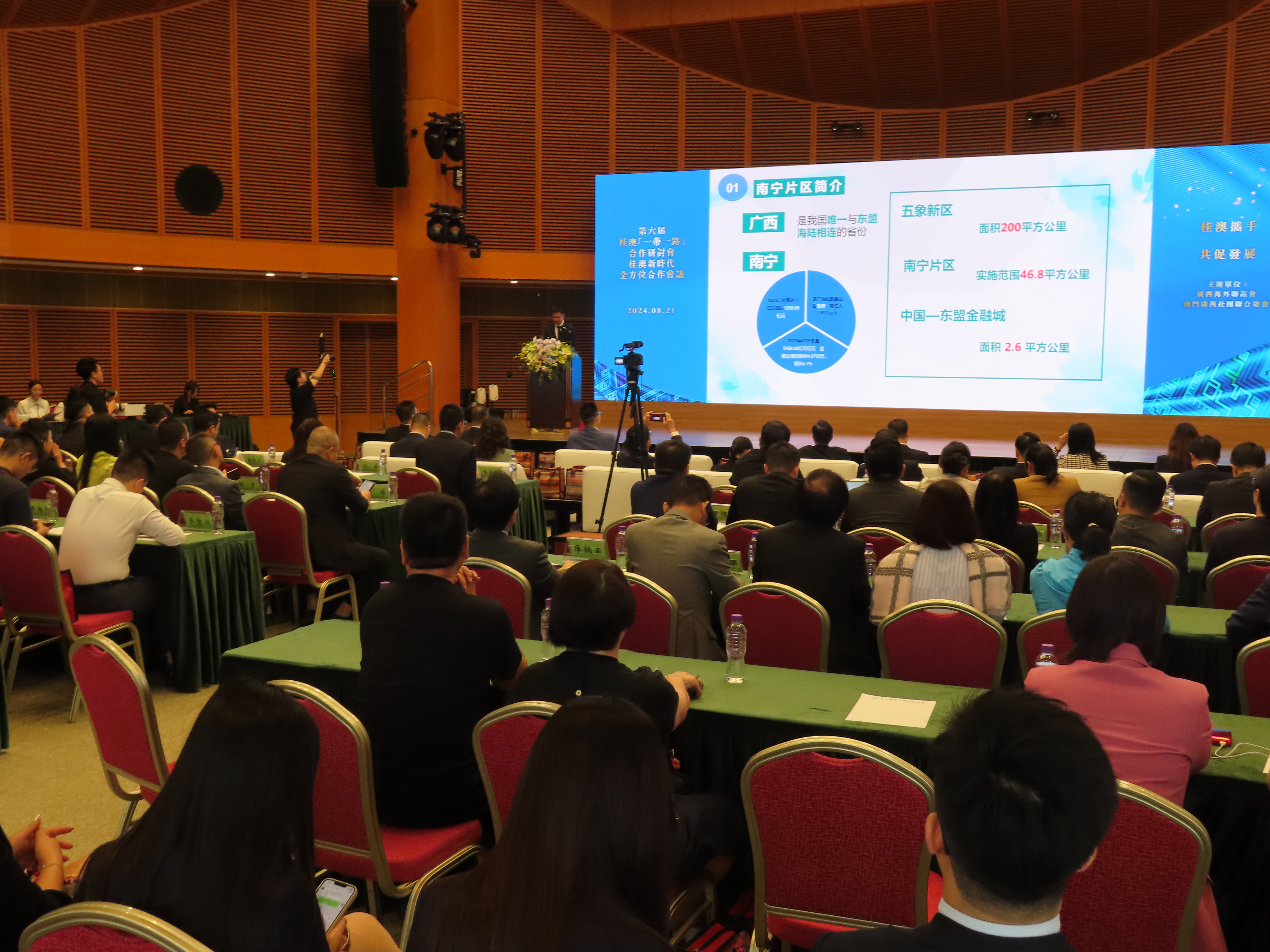廣西壯族自治區黨委統戰部部務委員、廣西海外聯誼會副會長覃定堅表示,桂澳是「一帶一路」重要節點,雙方攜手參與「一帶一路」建設,既有良好的合作基礎,又有廣闊的發展空間。在共同服務粵港澳大灣區國家戰略的背景下,推動兩地包括金融在內的務實合作將是桂澳合作邁向更大範圍、更寬領域、更高水準的重點。他提出四點合作方向,包括大力推進桂澳金融、產業和貿易,文旅及中醫藥合作。