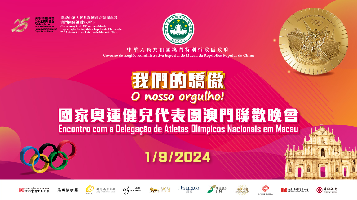 【即時新聞】為慶祝中華人民共和國成立75周年、澳門回歸祖國25周年,在國家的關懷和支持下,由澳門特別行政區政府、國家體育總局及國務院港澳事務辦公室共同組織國家奧運健兒代表團,即將於8月31日至9月2日來澳訪問三日,本澳市民將有機會近距離欣賞國家奧運健兒的風采,共同分享他們的喜悅。