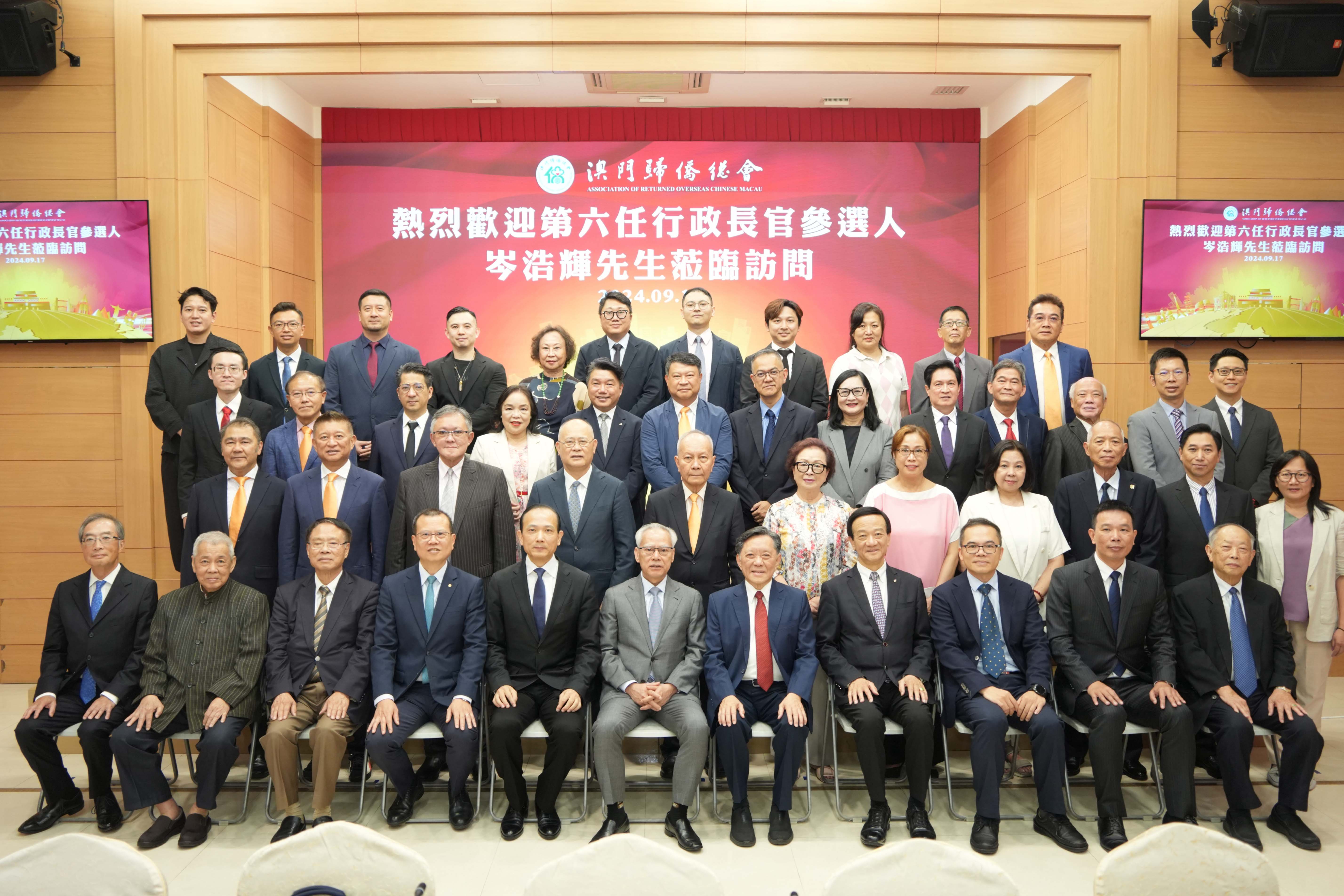 【即時新聞】9月17日下午四時,第六任行政長官參選人岑浩輝在代理人李煥江、競選辦公室副主任陳家良等陪同下,於僑安大廈拜會澳門歸僑總會,舉行座談並聽取意見。
