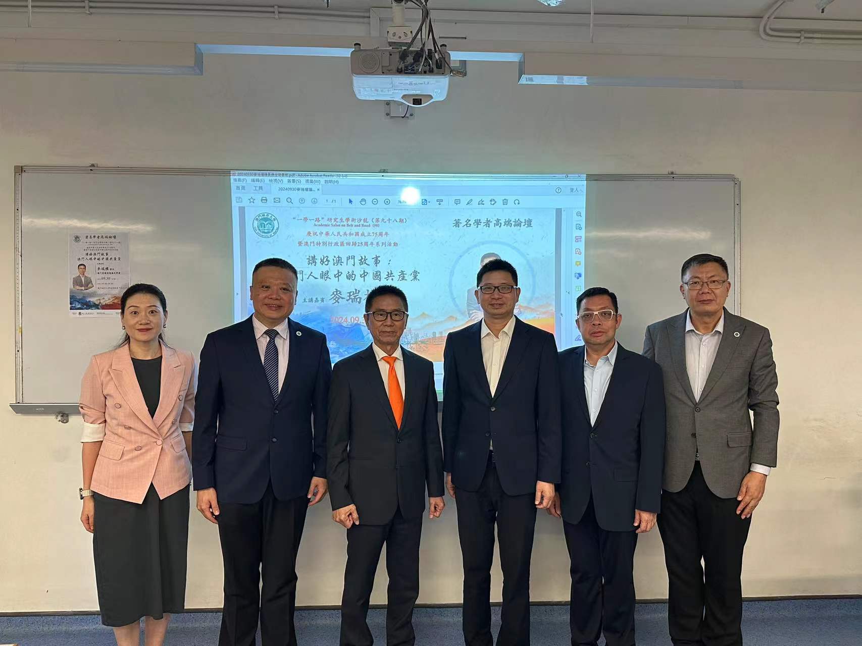 【即時新聞】澳門城市大學葡語國家研究院、澳門“一帶一路”研究中心主辦的慶祝中華人民共和國成立75周年暨澳門特別行政區政府成立25周年著名學者高端論壇下午舉行,邀請澳門家國情懷歷史學會會長、前立法會議員麥瑞權擔任主講嘉賓,以“講好澳門故事:澳門人眼中的中國共產黨”為主題,探討了澳門與中國共產黨之間的深厚聯繫,並分享如何在新時代背景下,發展建設澳門,發揮澳門區位優勢和“一國兩制”的制度優勢,講好澳門故事。