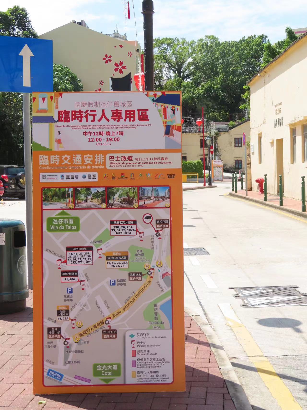 位於官也街巴士站對面的蛋糕店負責人沈生表示,行人專用區的設置為旅客提供步行條件途徑該處,有助帶動人流和生意,同時減少車輛通行,降低交通事故的風險,特別是在人流密集的假期期間。唯一不便的是貨物配送可能會因為交通限制而受到影響,需要提前安排或改變配送路線。