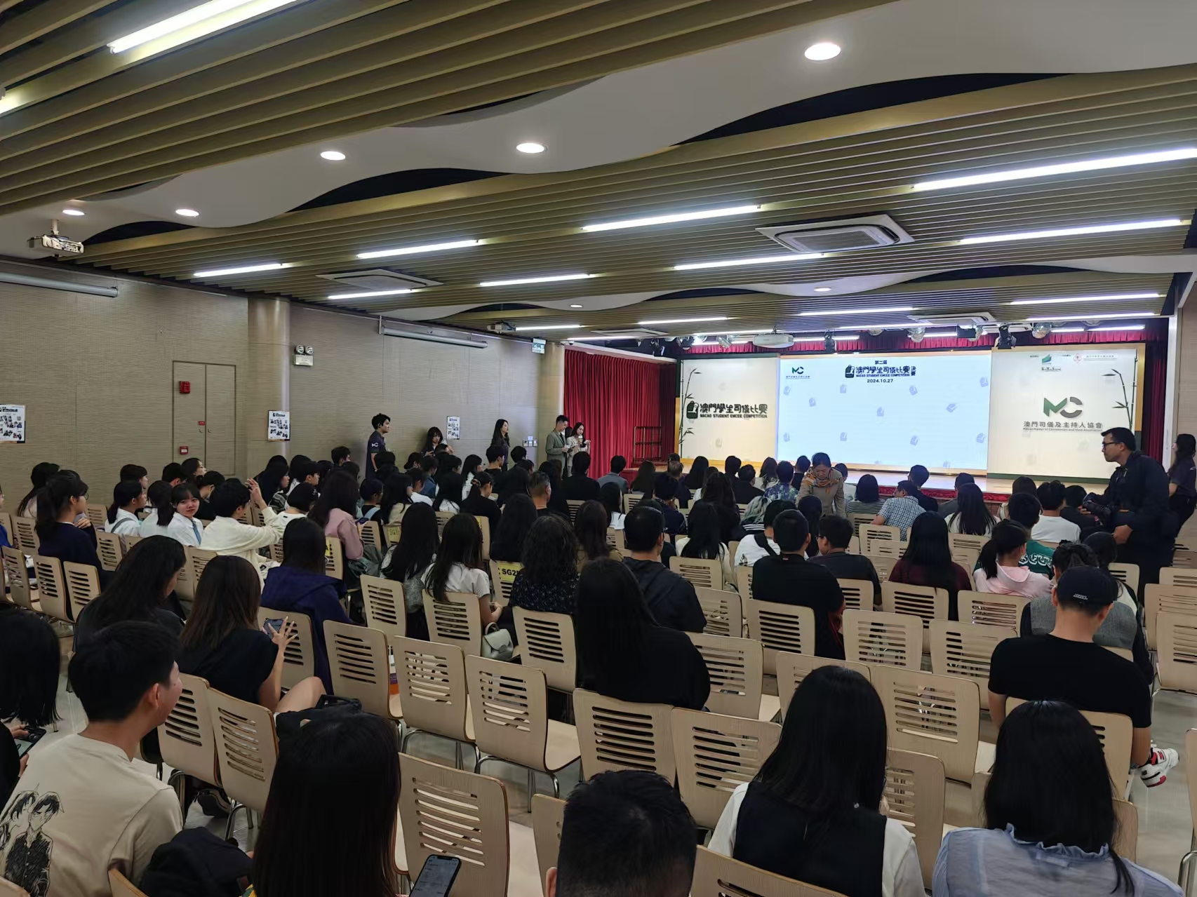 【即時新聞】由澳門司儀及主持人協會主辦,教青局資助的「第二屆澳門學生司儀比賽」決賽今晚鄭觀應公立學校舉行,今屆賽事有來自28所學校、近80位本澳學生報名參加,中學組八強選手、大學組六強選手於決賽比拼,競逐獎項。