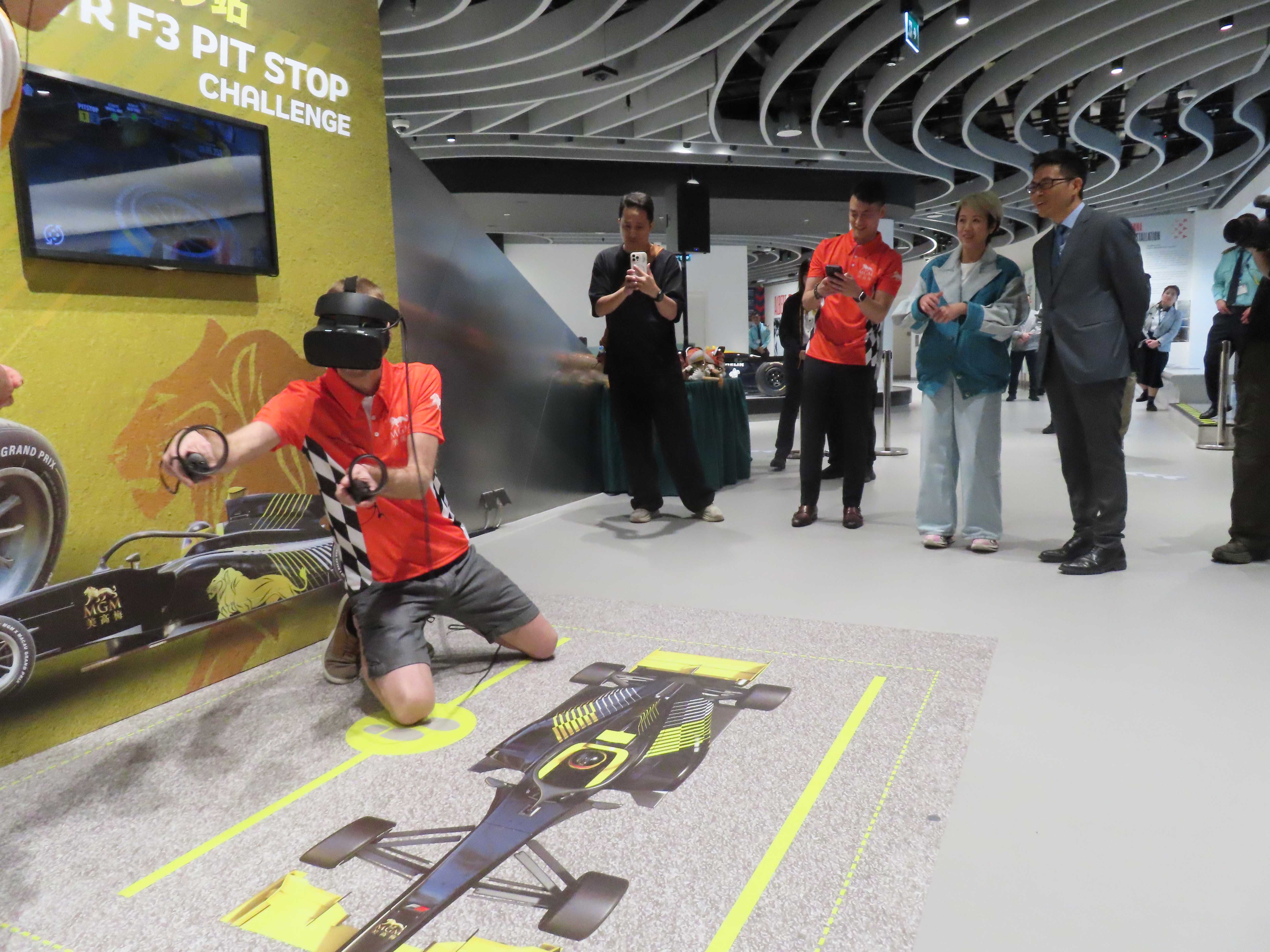 【即時新聞】承接全城賽車熱潮,美高梅與澳門大賽車博物館推出全新的VR互動遊戲設施——「F3動力狂飆維修站VR極速挑戰」,由即日至2025年2月17日在澳門大賽車博物館一樓隆重登場,為居民和遊客帶來嶄新體驗,進一步豐富澳門的多元旅遊產品,提升澳門大賽車博物館的魅力及澳門的國際旅遊形象。玩家在「F3動力狂飆維修站VR極速挑戰」遊戲中,將化身成為車隊一員在賽事維修站為賽車進行換胎。參加者戴上VR虛擬實境眼鏡,投身到方程式賽事中,挑戰兩分鐘內完成兩組換胎任務。遊戲的設定聚焦在車隊後勤換胎人員,讓車迷感受在追求速度,準確及團隊無縫協作下完成目標的重要性。