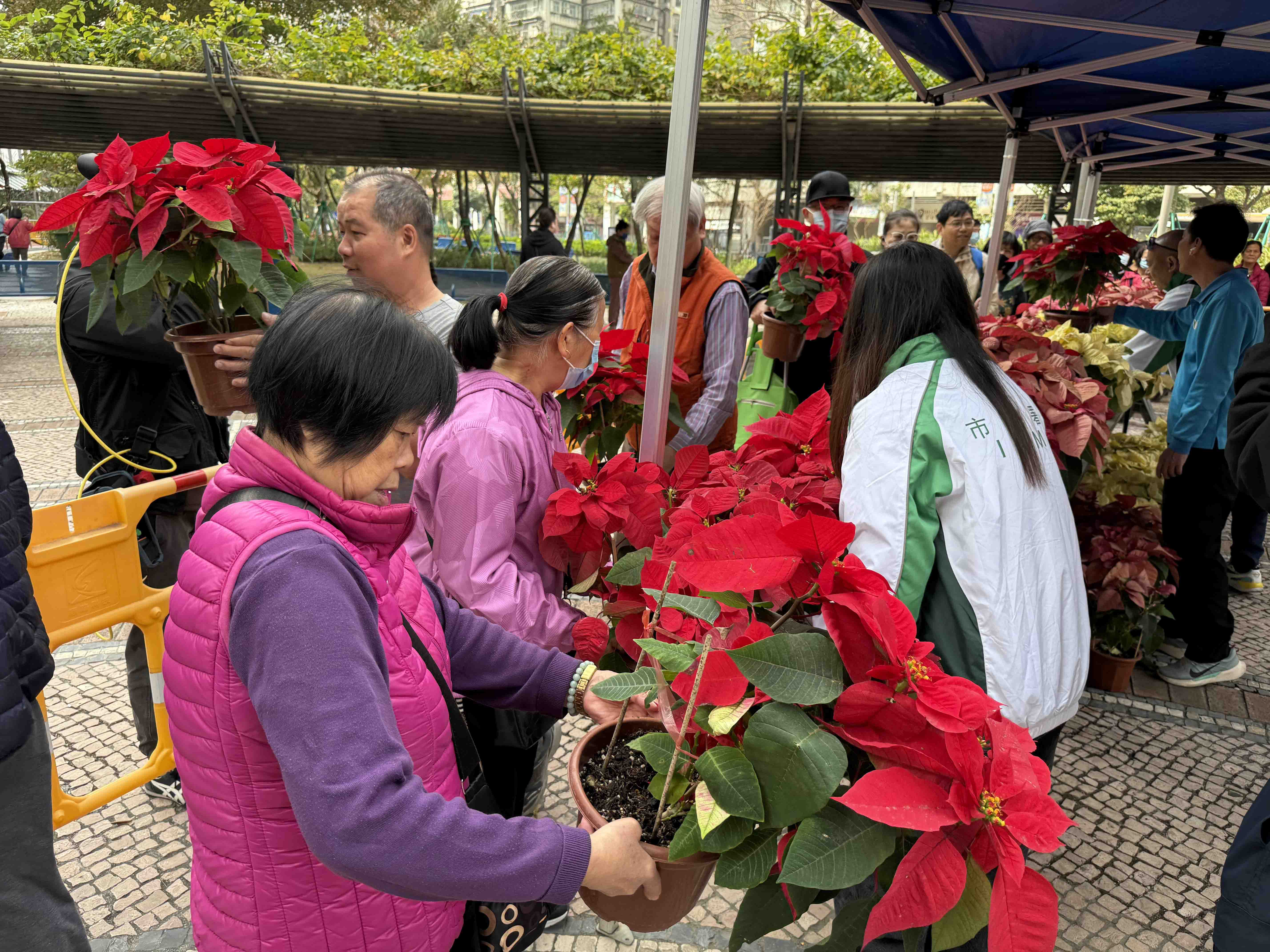 其中,市政署於今日上午十一時於黑沙環公園派送四百盆回收花卉,大批市民到場排隊領取,現場秩序良好。有領取市民表示,因紅色喜慶,希望新的一年紅紅火火,會將花卉擺放在露台,增添節日氣氛。另有市民表示,活動意義不錯,可向大眾宣傳綠色生活,提高環保綠化意識,希望當局能多舉辦類似活動。