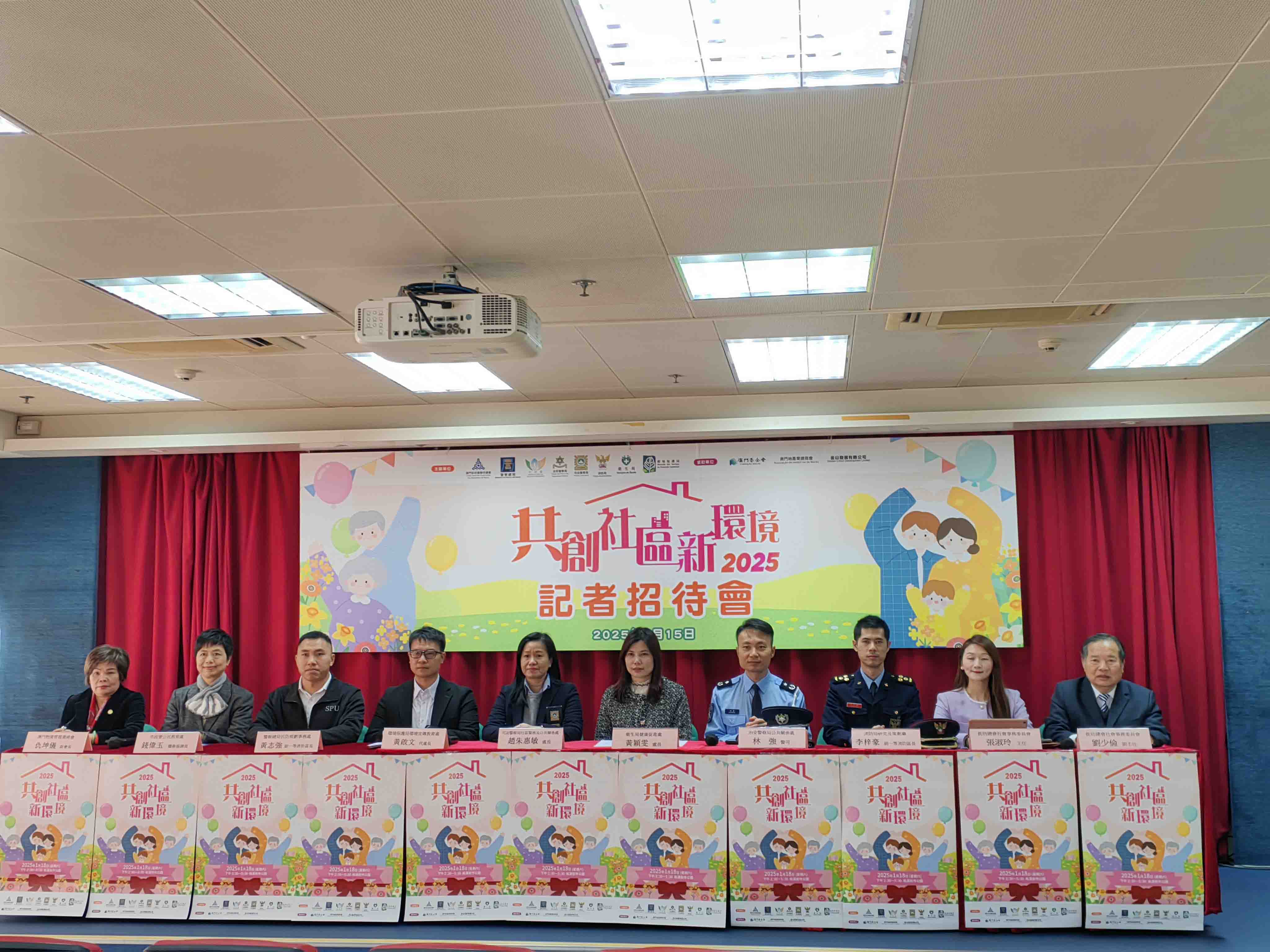 活動新聞發佈會下午三時假街總社服大樓二樓舉行,司法警察局社區警務及公共關像處處長趙朱惠敏,衛生局健康促進處處長黃穎雯,環境保護局環境宣傳教育處代處長黃啟文,治安警察局公共關系處警司林強,警察總局民防規劃事務處副一等消防區長黃志強,消防局研究及策劃廳副一等消防區長李梓豪,市政署公民教育處職務協調員錢偉玉,街總副理事長兼社會事務委員會主任張淑玲、副主任劉少倫,澳門物業管理業商會副會長仇坤儀等出席,介紹活動詳情。