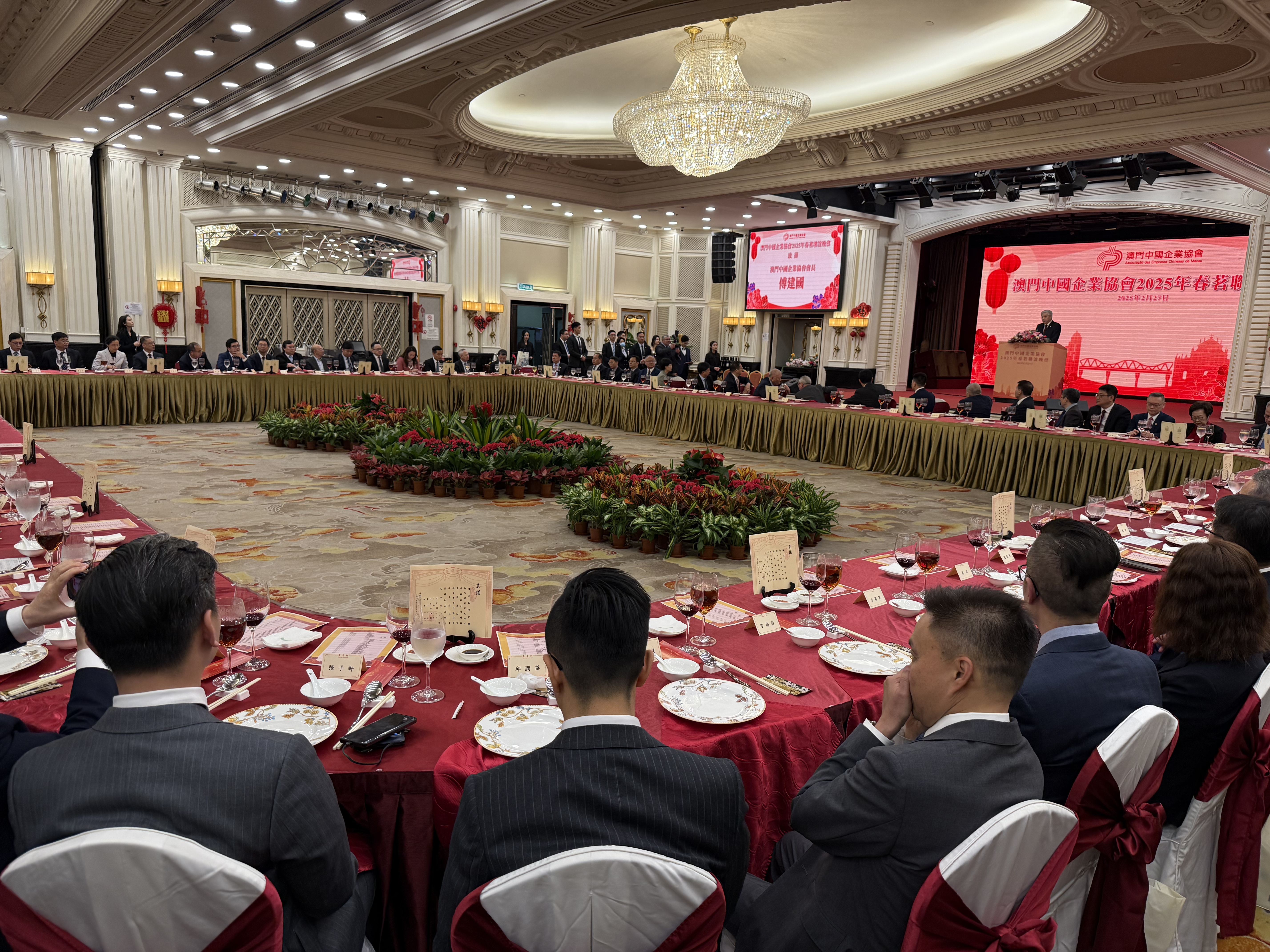 【即時新聞】澳門中國企業協會於今晚假萬豪軒舉2025年春茗聯誼晚會,行政長官岑浩輝,全國政協副主席何厚鏵,中聯辦副主任呂玉印,外交公署署理特派員孫向陽,駐澳部隊政治委員林慶華,運輸工務司司長譚偉文,澳門中華總商會會長崔世昌,以及澳門社會各界代表人士近千人出席活動。