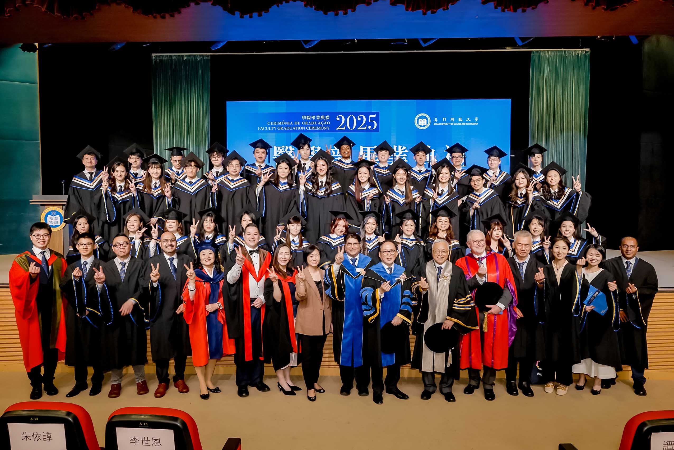 【即時新聞】「澳門科技大學2025學院畢業典禮——醫學部畢業典禮」於今日上午十一時舉行,醫學部畢業典禮由澳科大副校長譚廣亨、協理副校長兼藥學院院長朱依諄、醫學院院長霍文遜主禮。今年共403名畢業生獲授學位,其中89人獲授博士學位、92人獲授碩士學位、222人獲授學士學位。