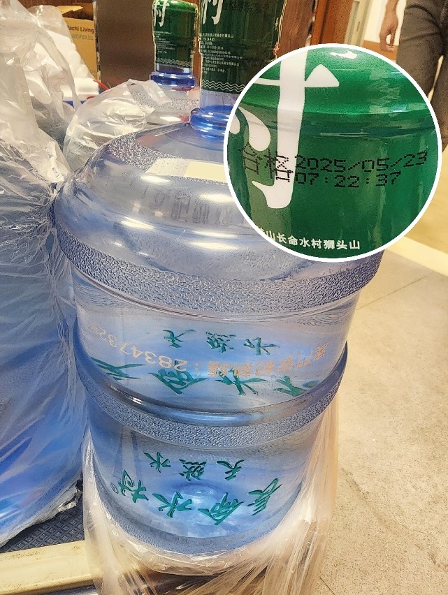 微生物檢驗不合格的桶裝水是“長命水村飲用天然水”,容量:18.9升,生產日期是2025年5月23日,產地為廣東中山,檢出大腸菌群含量不合格。涉事產品以訂購散客為主,沒有供應醫院及學校。