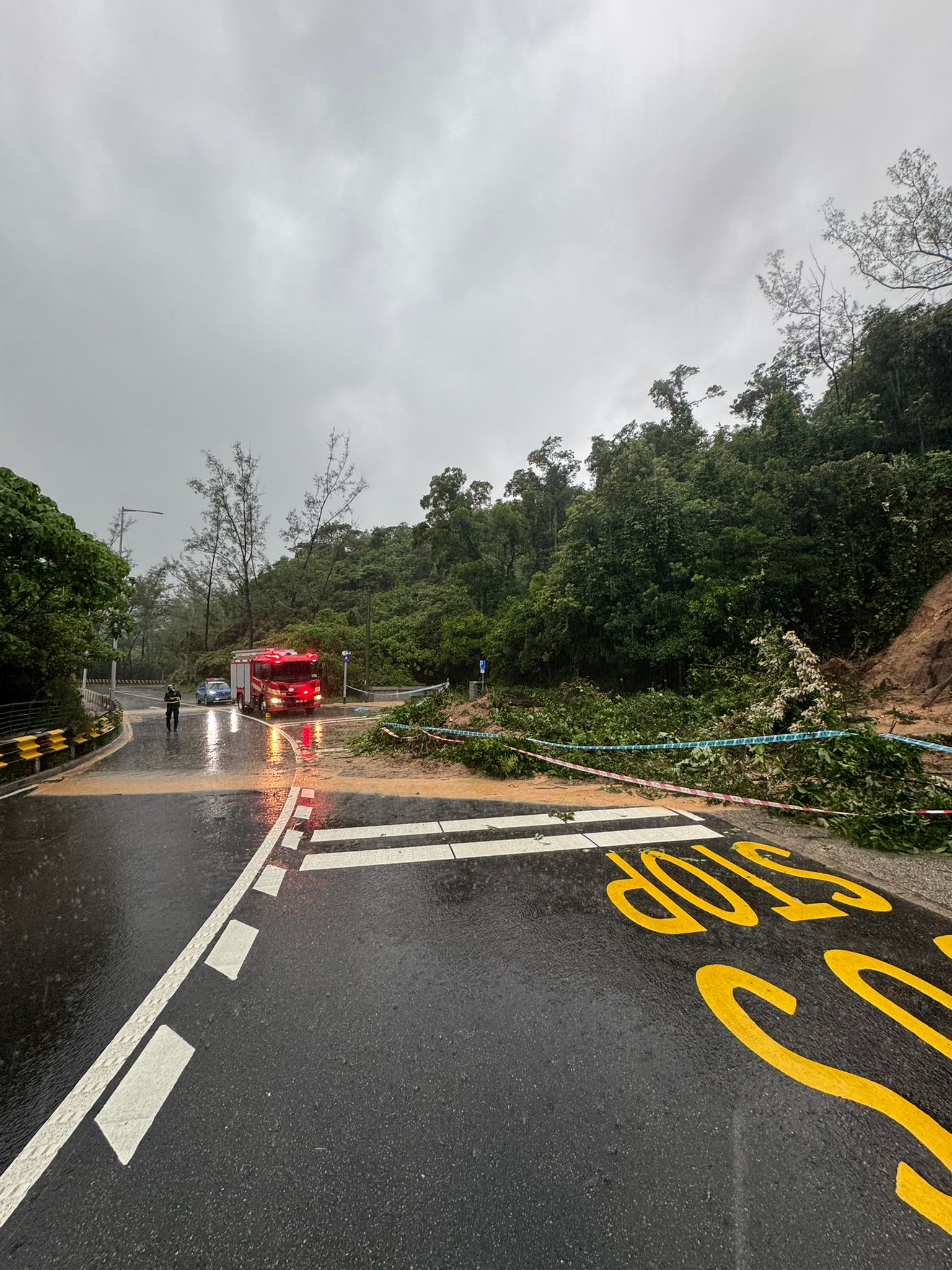 【即時新聞】今日暴雨警告生效期間,消防局密切關注天氣變化及市面情況, 及時向市民發佈提醒信息,同時派遣車輛巡視各區及廣播呼籲,適時增派人員處理求助個案,竭力保障市民安全。