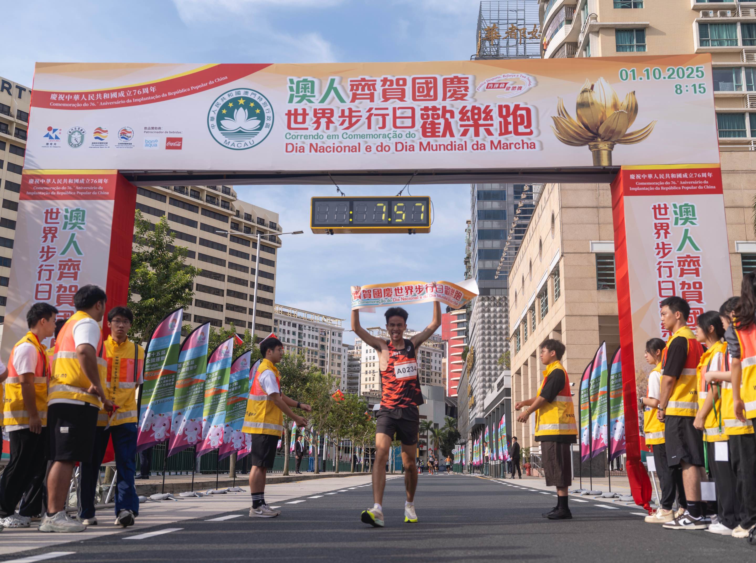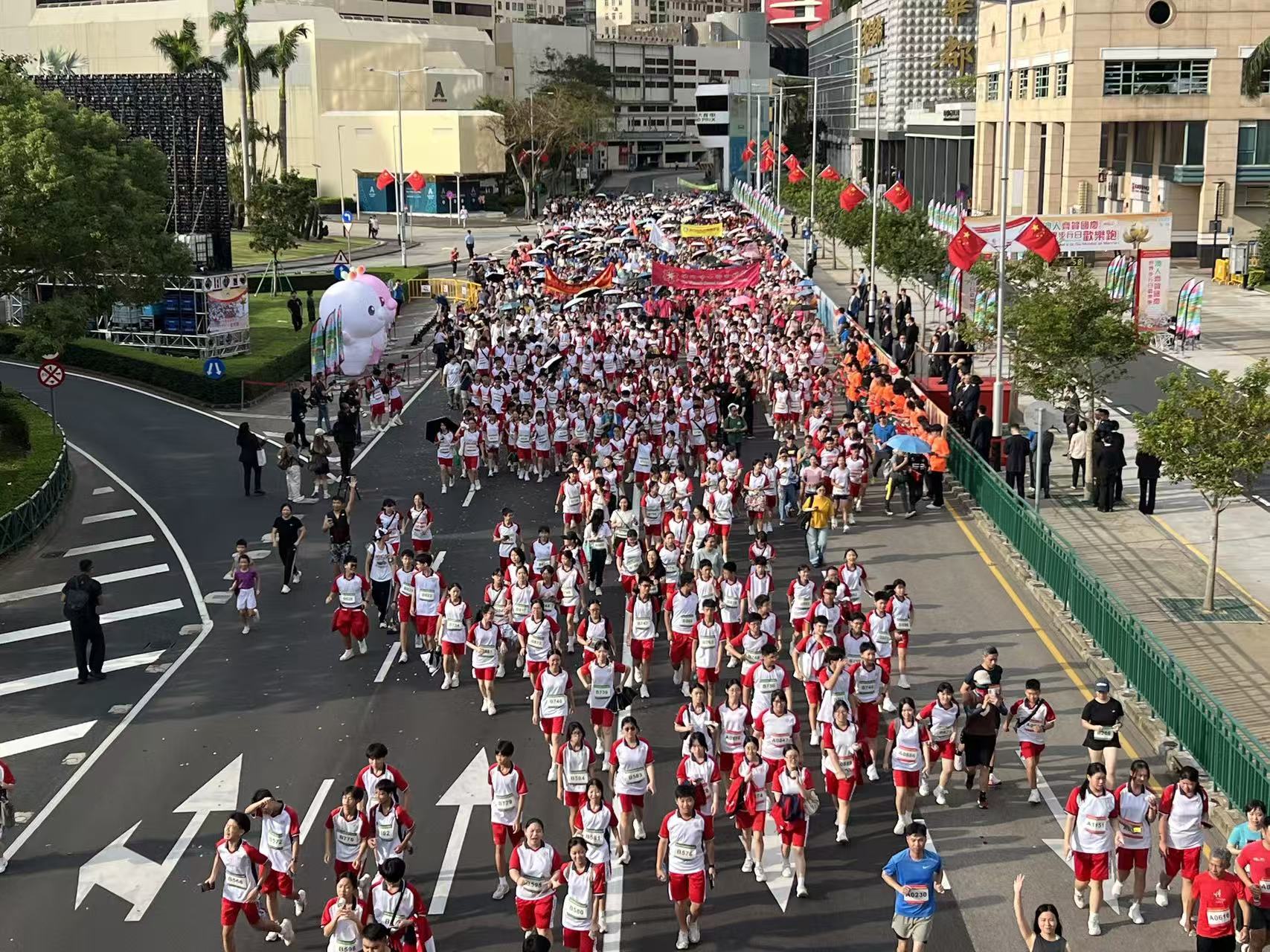 升旗儀式後,由體育局舉辦的“2025澳人齊賀國慶世界步行日歡樂跑”於金蓮花廣場前隨即起跑。