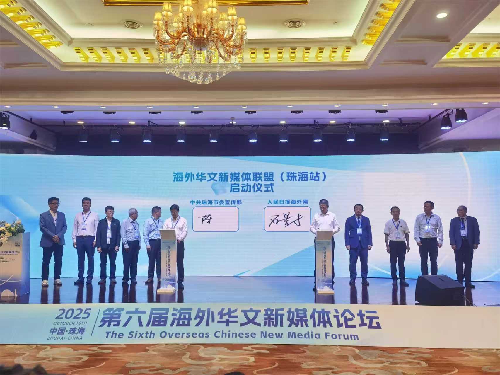 論壇現場,嘉賓啟動“海外華文新媒體論壇聯盟(珠海站)”。海外華文新媒體論壇聯盟(珠海站)由珠海市委宣傳部與人民日報海外網共同發起,雙方將在內容合作與生產、管道共建聯動、活動策劃與執行、品牌推廣與賦能四大方面展開合作,共同推動珠海城市品牌、產業品牌走向世界,助力珠海高質量發展。