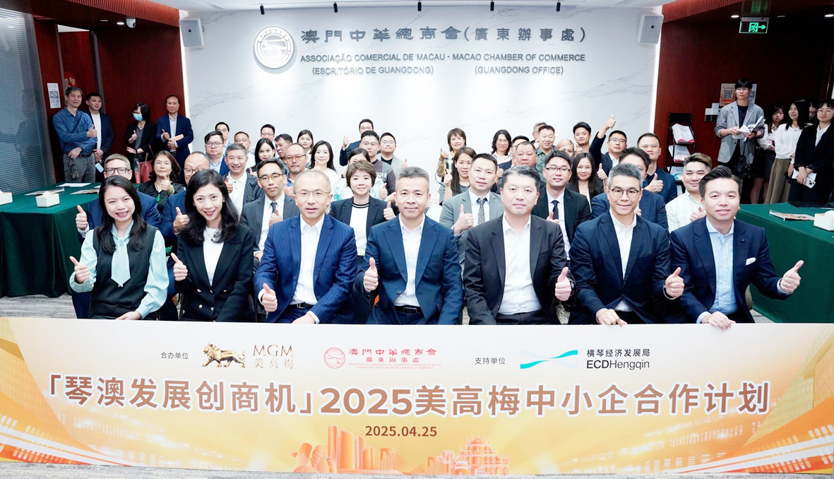 【特訊】美高梅再度攜手澳門中華總商會廣東辦事處,並獲橫琴粵澳深度合作區經濟發展局支持,於昨日舉辦「琴澳發展創商機」2025美高梅中小企合作計劃之合作區考察團及商業配對活動。活動旨在把握「澳門+橫琴」的定位,為促進區域融合提供平台,深化琴澳工商企業間的交流合作,助力澳門經濟適度多元。