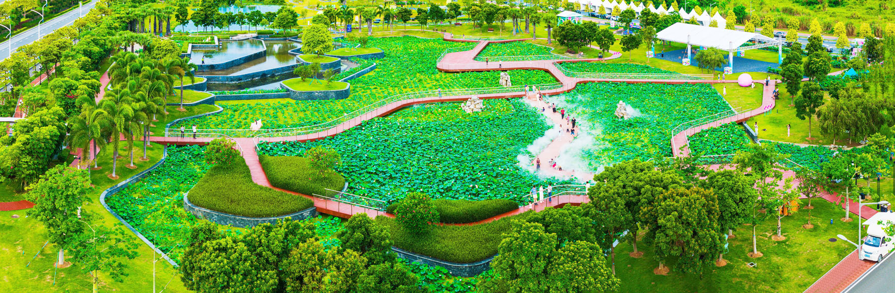 本屆荷花節主場地荷花園佔地約4.5萬平方米,特別選定「粉霸王」為主題花。其花型盛大華美,傳遞出熱烈而忠誠的情感,喻意琴澳兩地的深厚友誼生生不息。園內匯聚瑤池之星、杏粉、錢塘驕陽等80個荷花品種。各品種荷花競相綻放,姿態曼妙,共同繪就「一池碧水千荷競,萬點胭脂映日開」的絢爛盛景,重現「接天蓮葉無窮碧」的詩意畫卷,吸引八方賓客共賞「荷花源」的獨特魅力。在荷花節籌備期間,更是驚喜發現了一株因嵌合變異而顯現雙色花瓣的「萬維沙」睡蓮呼應著本屆荷花節主題——「好運蓮蓮」,與第二屆荷花節出現的並蒂蓮,無不寓示著「雙城荷花盛事」將更進一步推動琴澳兩地協同發展。