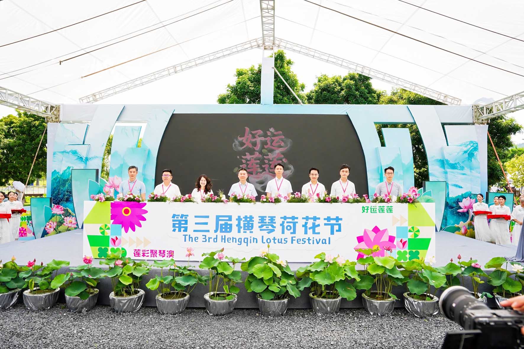 第三屆橫琴荷花節開幕儀式於昨日早上10時在橫琴荷花園舉行,橫琴深合區城市規劃和建設局局長張國基、副局長王頡,澳門市政署園林綠化廳代廳長陳海峰,橫琴深合區金融發展局副局長鮑偉春,橫琴深合區城市規劃和建設局市政管理署代理署長梅曉,橫琴深合區行政事務局綜合事務處處長梁偉鑾,澳門市政署園林綠化廳自然保護研究處代處長陳凱豪,廣州市嘉卉園林綠化建築工程有限公司黨支部書記、執行董事王瑋等嘉賓出席並主禮。