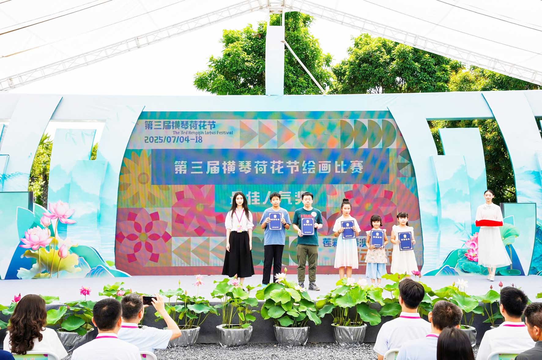 開幕禮上,並舉行「蓮彩聚琴澳好運蓮蓮」繪畫比賽頒獎儀式,珠海歌舞團帶來的舞蹈作品《琴澳合蓮》,以清新優雅的舞姿、靈動的舞蹈語彙,譜寫琴澳兩地從地理合作到文化共情的昇華;澳門青年歌手歐陽日華深情獻唱澳門回歸20週年主題曲《蓮成一家》,抒發澳門回歸後與祖國連成一家、家國同喜的團圓和諧之情。琴澳兩地連袂呈現的精彩文藝演出,緊扣荷花節「好運蓮蓮」主題,通過藝術的表達,傳遞出琴澳攜手同行、共創美好未來的積極寓意,為深化琴澳文化協同發展,推進琴澳一體化進程注入了新的活力。