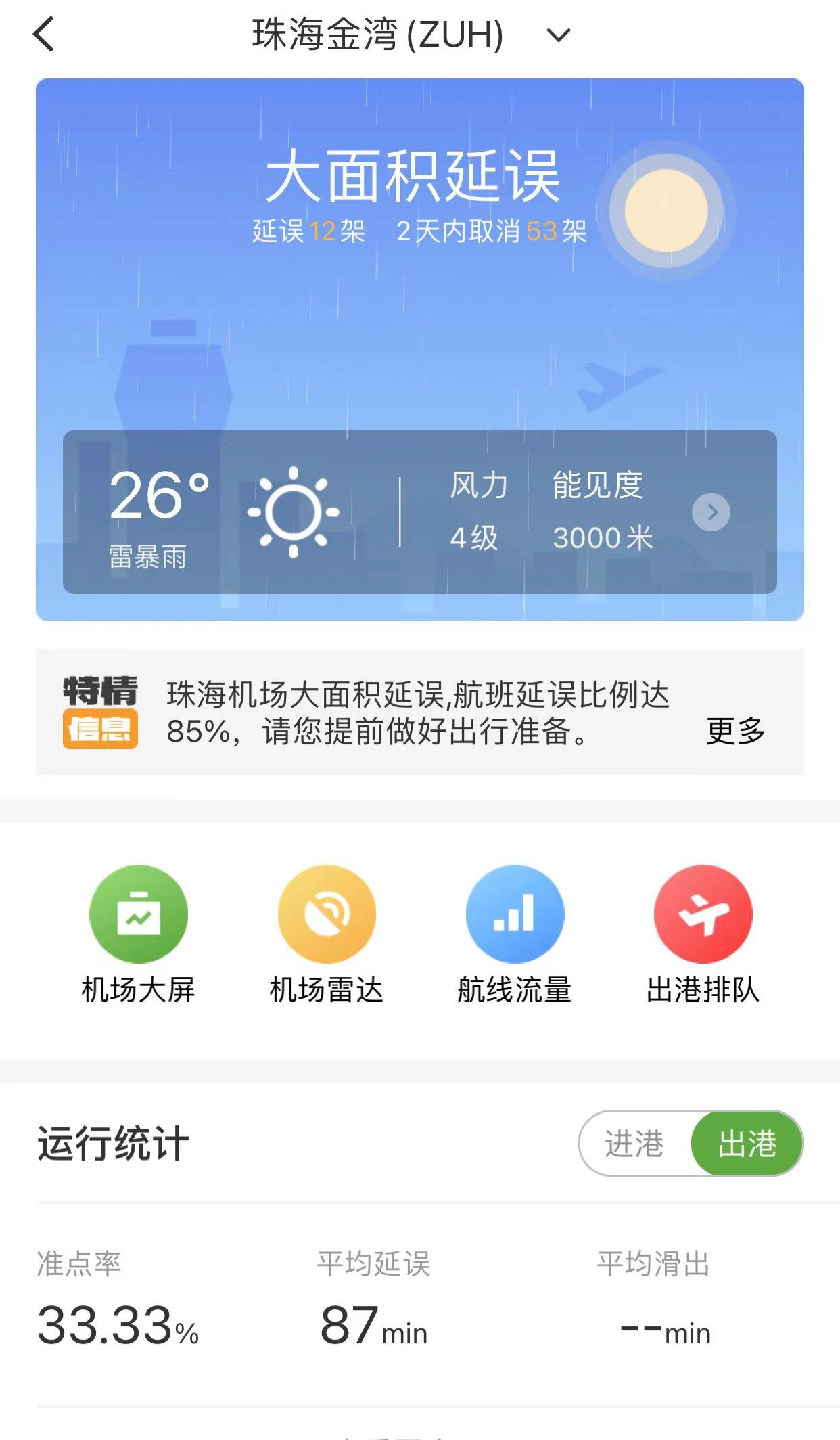 【即時新聞】受天氣影響,截止到11:39,珠海機場取消4月21日進港航班34班,出港航班34班。請出行旅客及時留意航班資訊,與所購票航空公司聯繫,合理安排出行。