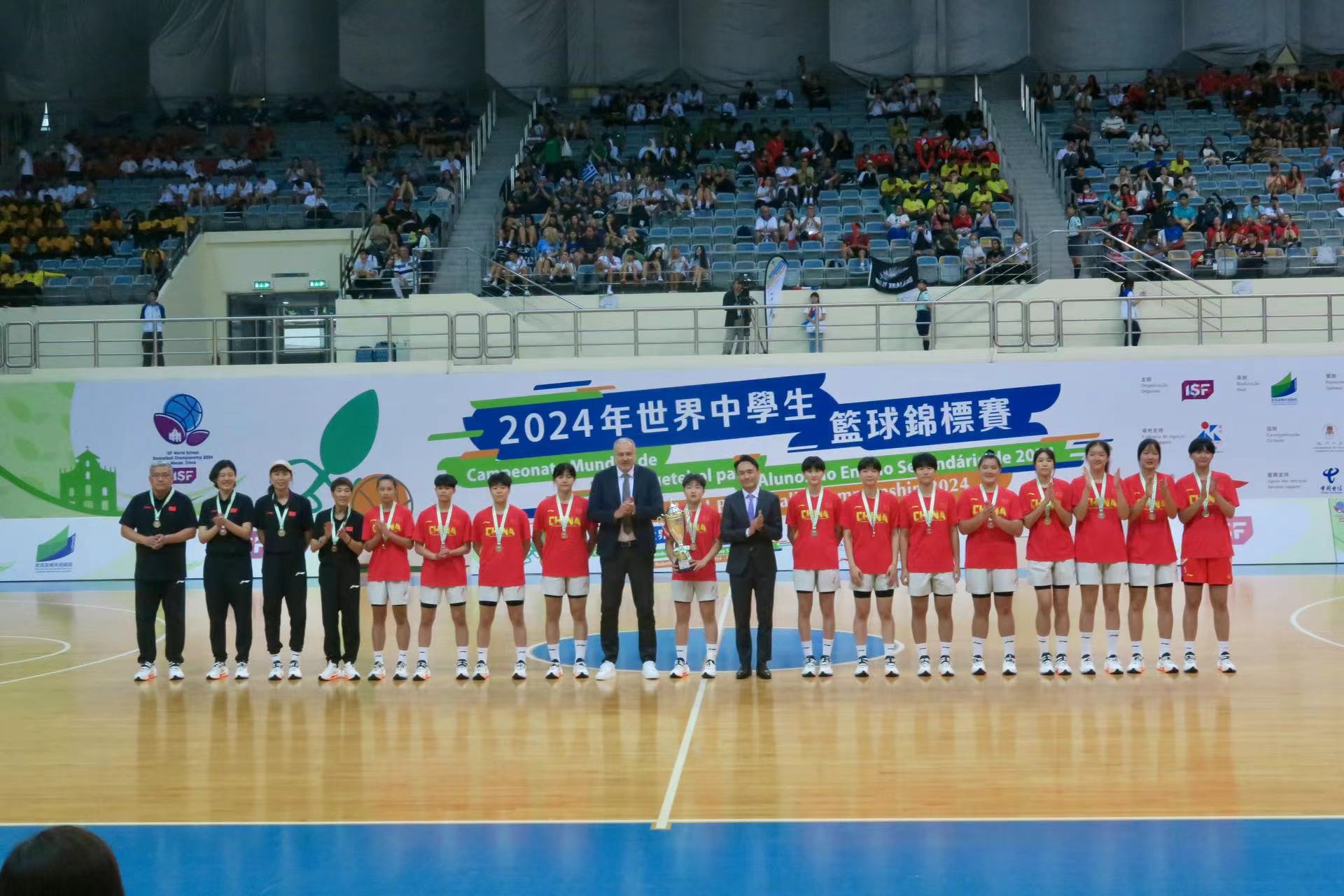 【即時新聞】由國際中學生體育聯合會(ISF)主辦,教育及青年發展局承辦的“2024年世界中學生籃球錦標賽”今日在塔石體育館上演兩場決賽,其中上午的女子組決賽,中國一隊以72:65撃敗法國隊,奪得冠軍,新西蘭隊獲得季軍;下午進行男子組決賽,由希臘對陣法國,最終希臘以74:63摘得桂冠,土耳其則位列季軍。