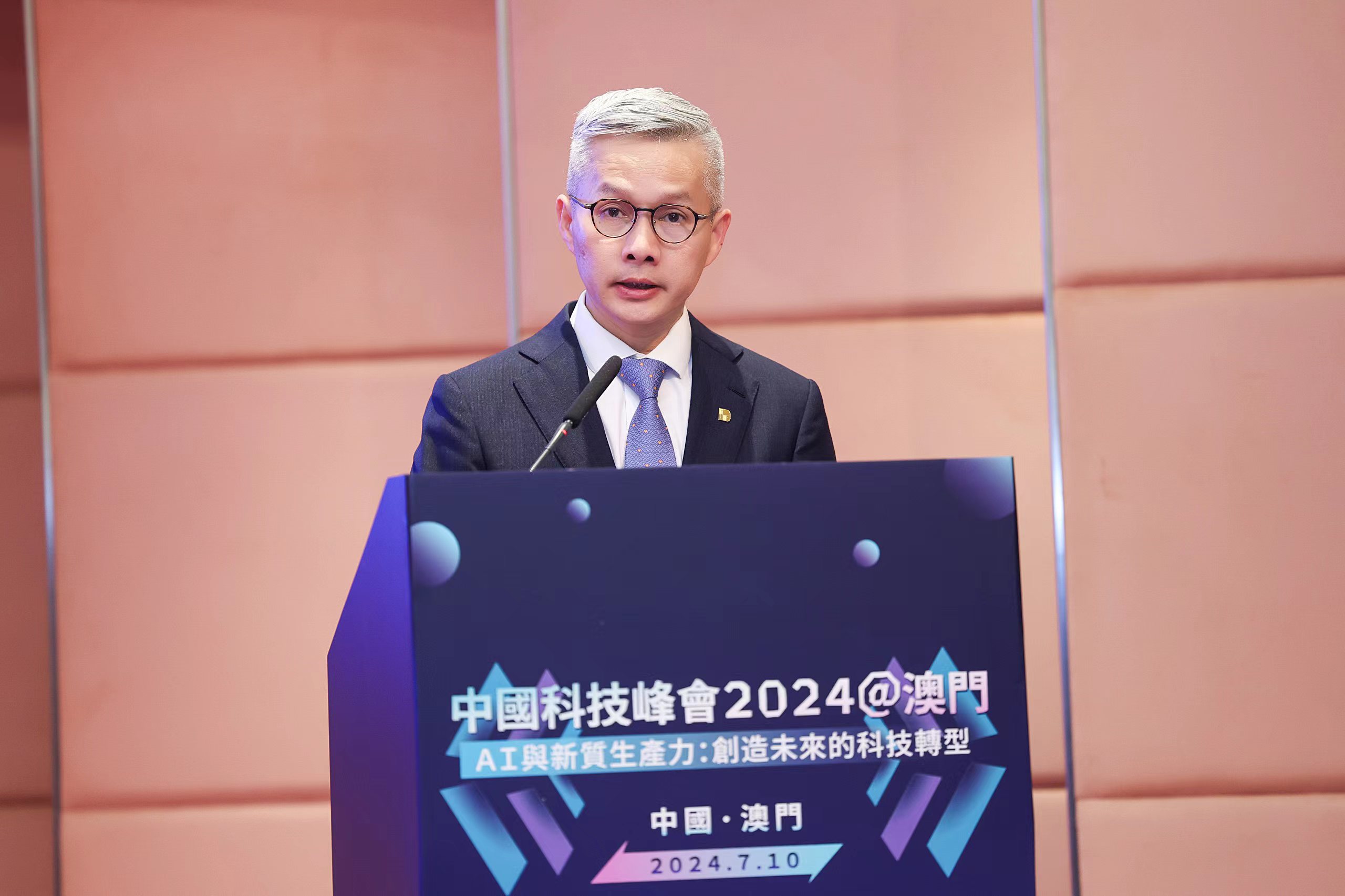 【即時新聞】由澳門科學技術協進會主辦,經科局、中國科學技術協會港澳台辦公室、澳門中聯辦經濟部特別支持的「中國科技峰會 2024@澳門」開幕式暨主旨報告今日上午假澳門世貿中心5樓蓮花廳舉行,主題為「AI與新質生產力:創造未來的科技轉型」,吸引了內地與澳門 250 名科技工作者及餐飲和零售業界參與。本屆峰會除開幕式和主旨報告外,更設有兩個AI與業界應用的座談會及「灣區夜話」交流會。