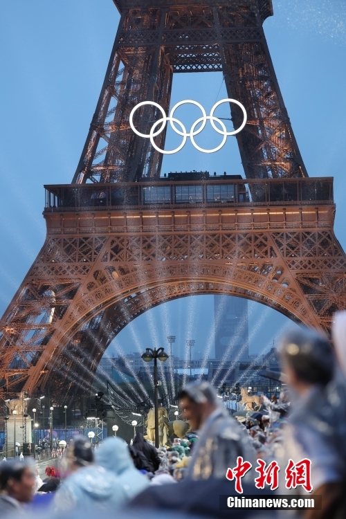 伴隨著奧林匹克會歌,會旗緩緩升起。鏡頭拉遠,開幕式主會場特羅卡德羅廣場的舞台變成了艾菲爾鐵塔的形狀。