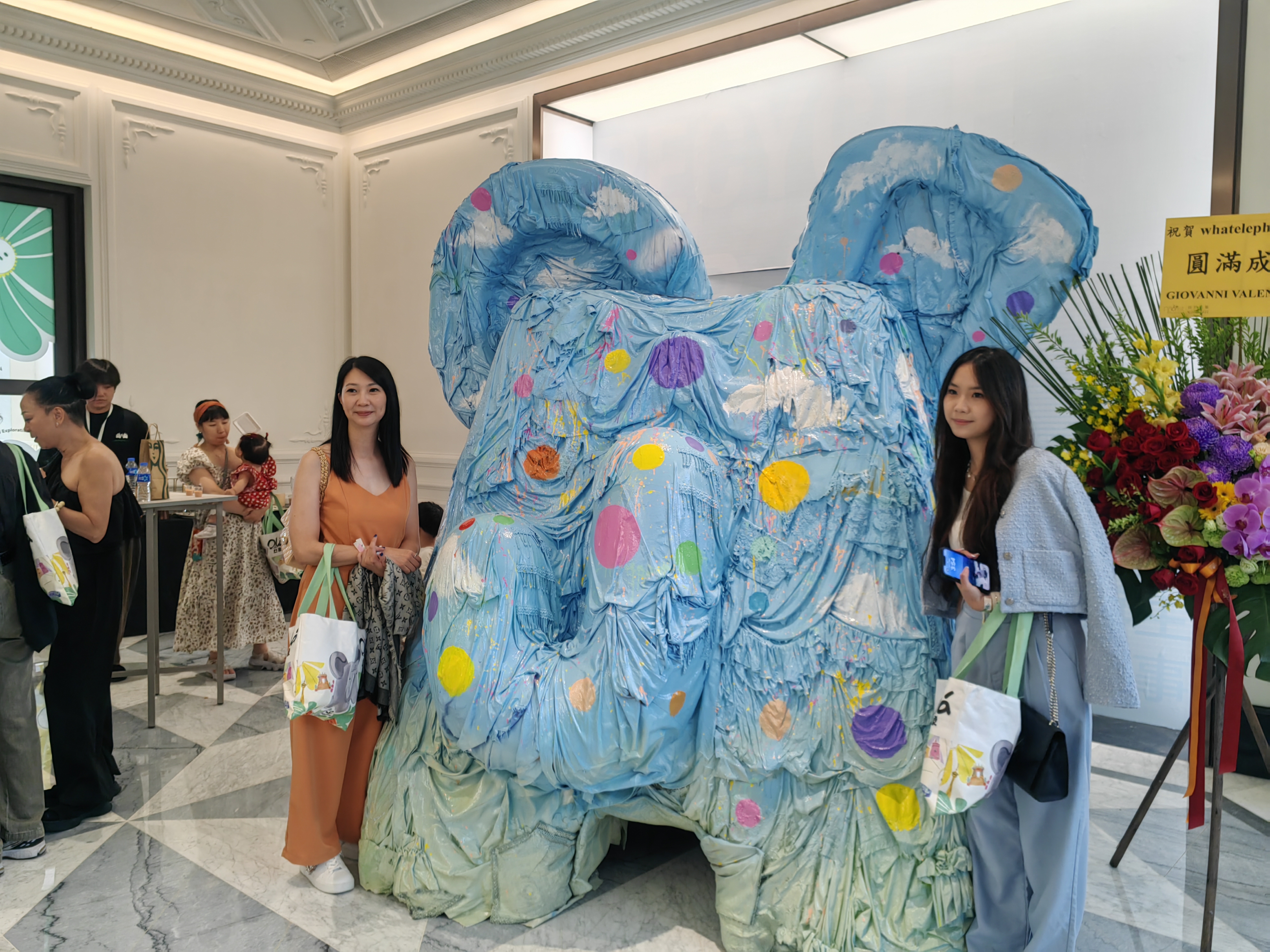 剪彩儀式後,澳門青年藝術家林啓榮與澳門聾人協會合作共融一同描繪創作乜象藝術作品,爲弱勢群體發聲。乜象的耳朵生來便是一大一小不對稱的,幷不是傳統意義上的漂亮小象,乜象創始人想借此形象呼籲大家,正視自己的“缺陷”,關愛弱勢群體,既爲他們提供幫助,也以平等的心態一起携手同行。