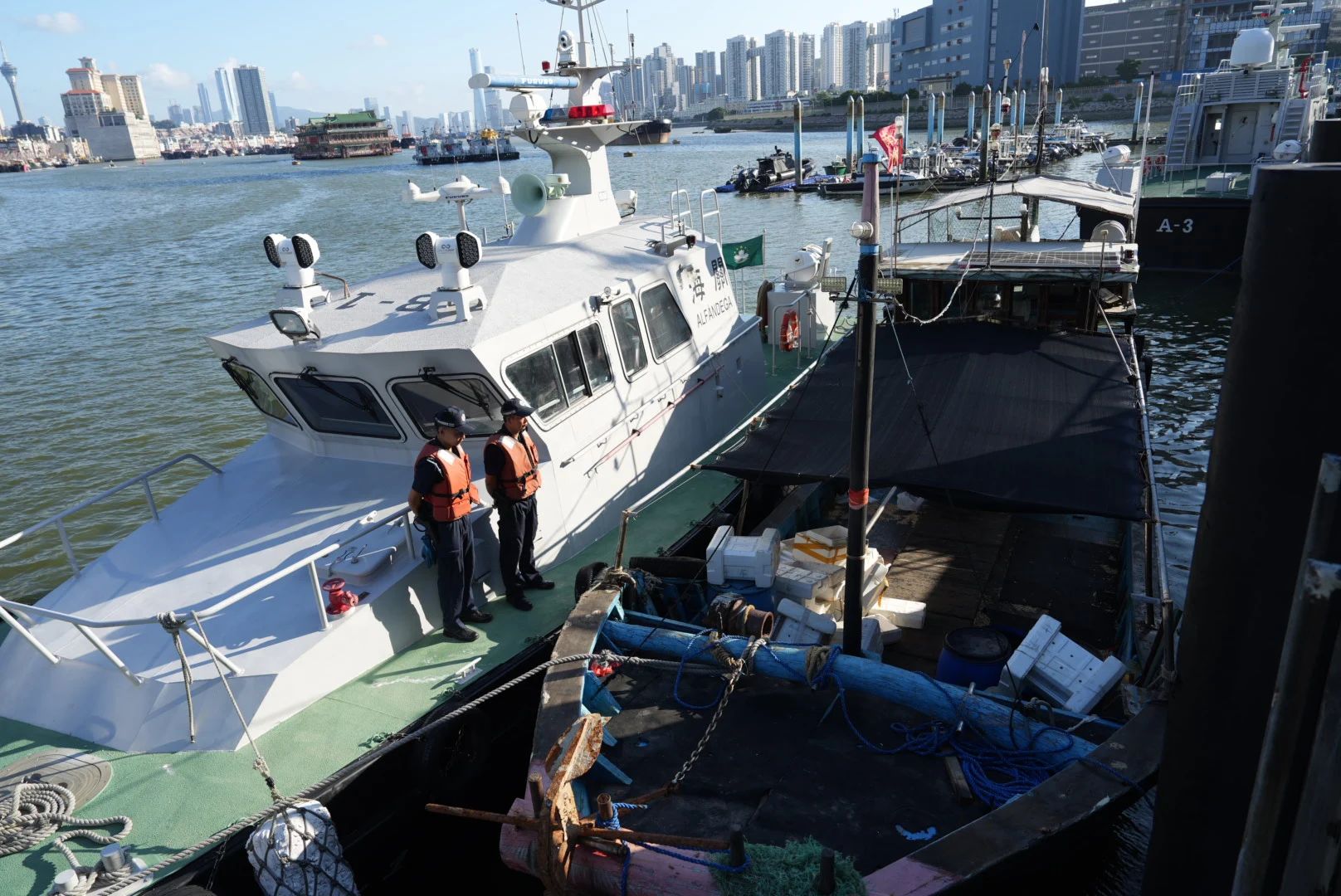 於3日淩晨,海關對內港一帶碼頭進行恆常監察,發現內港33號碼頭有1艘可疑漁船懷疑進行走私活動,隨即通知海關巡邏船艇前往截查,並成功在內港27號碼頭對開海面截停可疑漁船。經海關人員使用關檢設備對該漁船進行檢查後,在該漁船暗格內發現10箱沒有申報出口的活龍蝦,約重185公斤,價值約為15萬澳門元,現場查獲1名男性船主及2名男性船員。