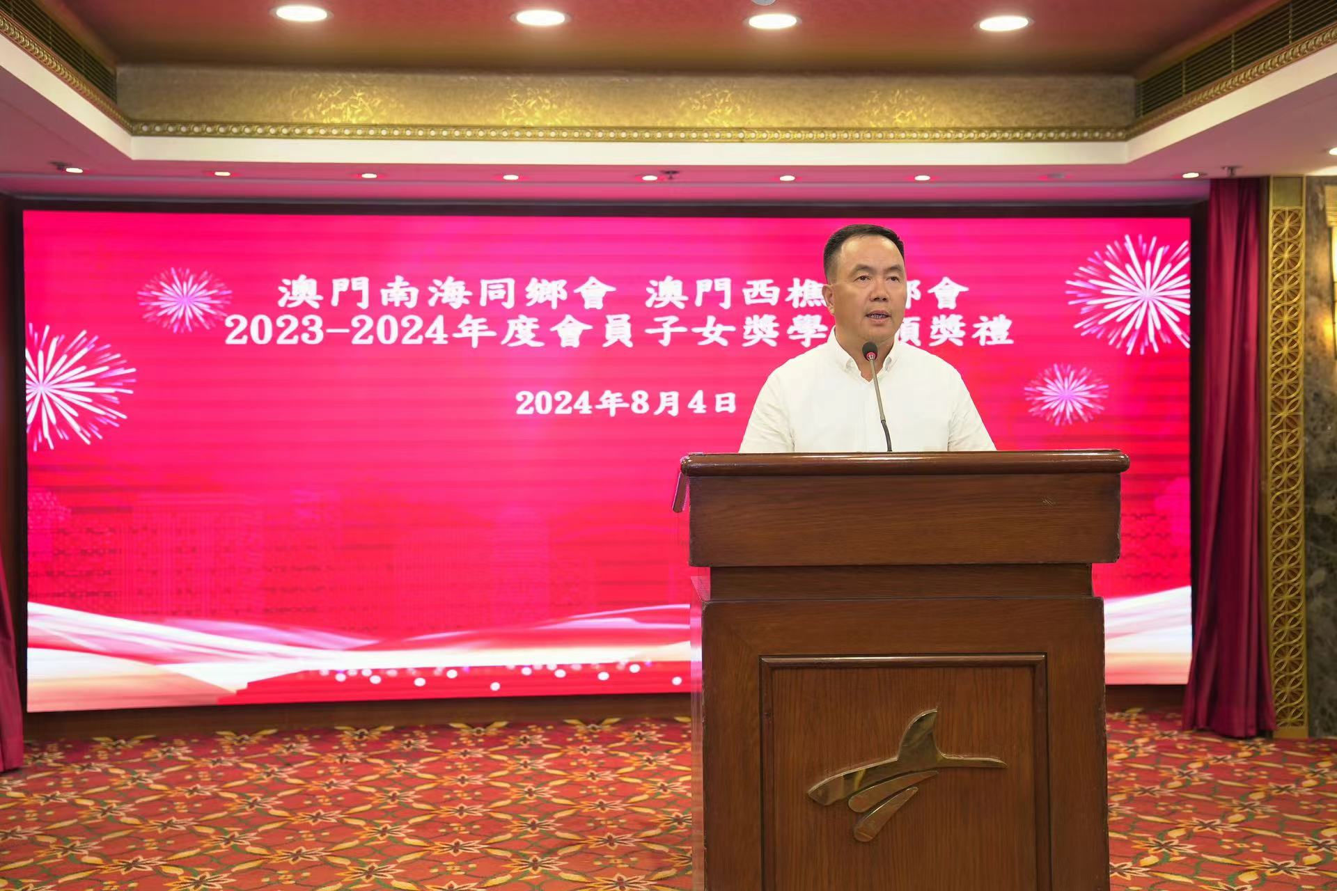 澳門南海同鄉會理事長吳富國代表兩會在致辭時表示,頒發會員子女獎學金已成為兩會一項年度恆常性活動,目的是鼓勵會員子女勤奮學習,關心社會,認識家鄉。教育是國家發展的基石,也是個人成長的必然之路。在當今這個知識爆炸的時代,更需要注重教育的培養和發展。獎學金的獲得既是對同學們當前取得成績的肯定,也是對今後學習的鼓勵和鞭策,努力更好地實現個人理想和抱負。