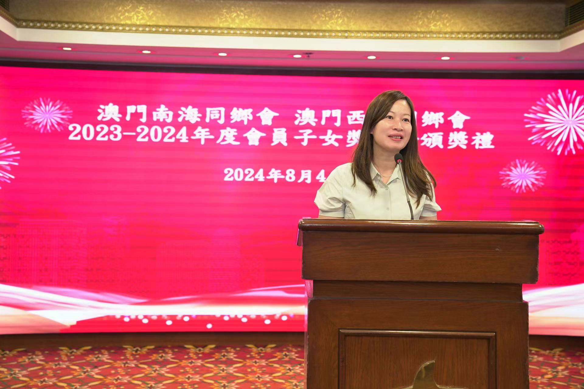 【即時新聞】澳門南海同鄉會、澳門西樵同鄉會「2023—2024年度會員子女獎學金」頒獎禮中午在嘉年華酒樓舉行,向180多名成績優異的學生頒發獎金獎項,得獎學生及家長300多人出席。南海區委統戰部常務副部長朱敏華,西樵鎮政協工作委員會主任麥志成、南海中學校友會會長馮禮強等領導親臨出席是次活動。