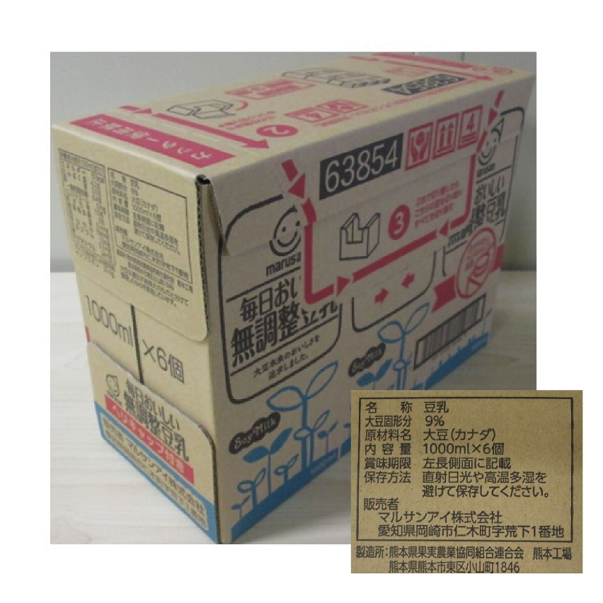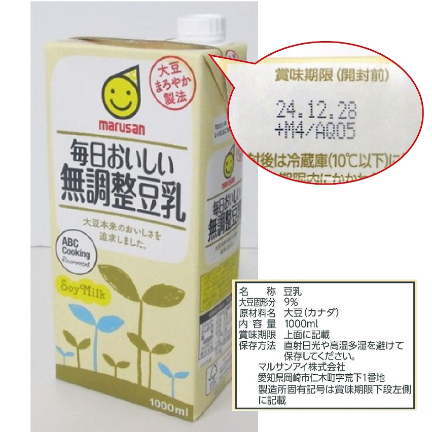 涉事產品名稱為“毎日おいしい無調整豆乳",品牌為“MARUSAN ",內容量為1000毫升,產品條碼為4901033 633042﹝盒裝﹞、4901033 004736﹝外箱﹞,製造商工場特定記號為M4,賞味期限為24.12.28、24.12.29。