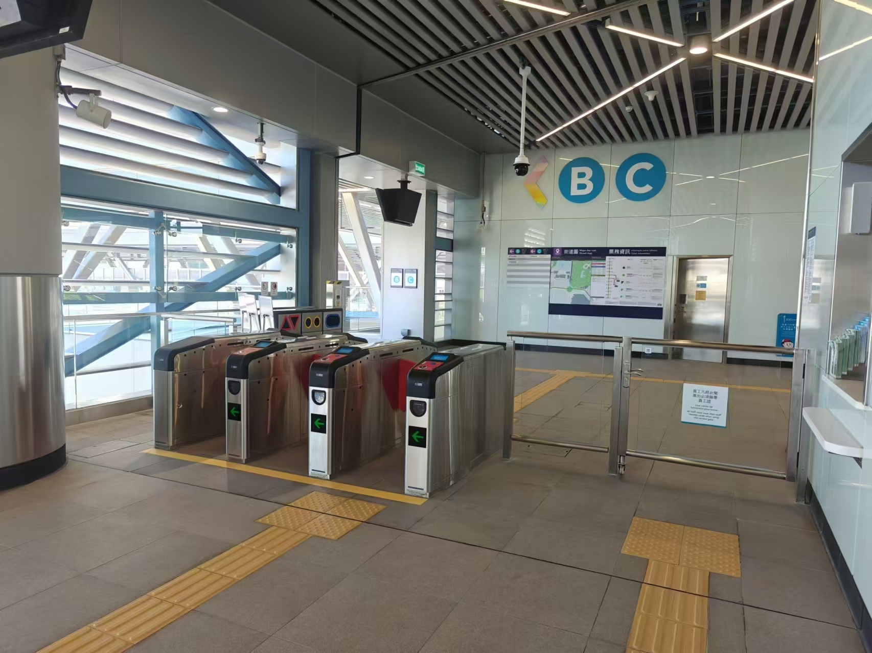 協和醫院站位於輕軌東亞運站與蓮花站之間,記者中午走訪發現,今日使用該站的人流不多,站內設有客戶服務中心、升降機、扶手電梯、加闊閘機、候車座椅以及失明人士引導徑等設施,方便長者、殘疾人士及其他有需要乘客使用。協和醫院站目前設有3個出口,其中B出口可通往協和醫院大樓、離島急診站和鏡湖護理學院,市民可在B出口通過設有行人輸送帶的接駁行人天橋前往協和醫院,而A出口則通往新濠影匯和蓮花路停車場,C出口可達石排灣水塘。此外,將來也可透過協和醫院站實現輕軌氹仔線和石排灣線之間的換乘,現時石排灣線主體工程已基本完工,正開展各系統及列車運行測試工作,預計年內開通。