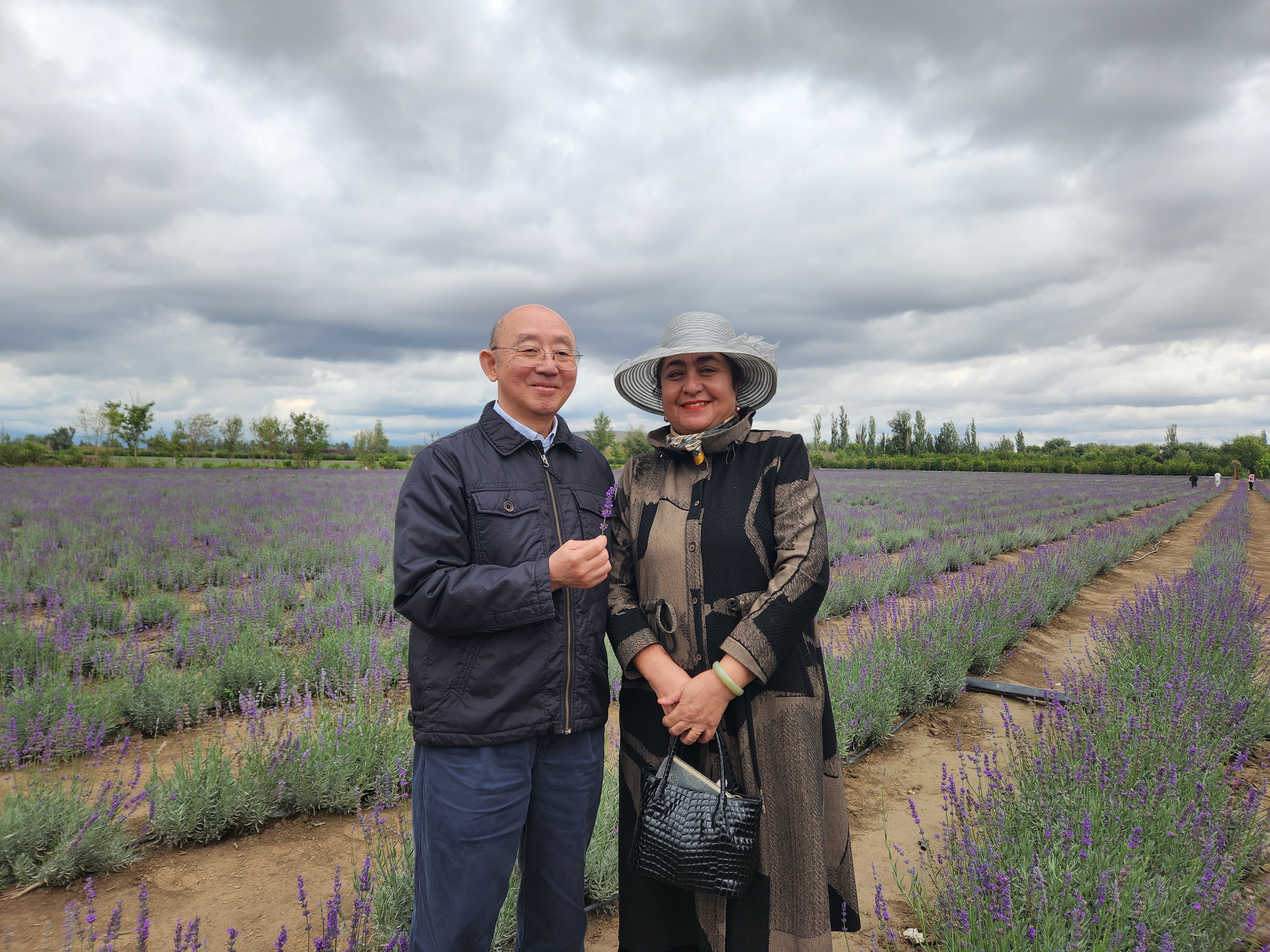 「伊犁河谷向西敞開,受大西洋暖濕氣流的影響,形成了獨特的逆溫帶氣候,這裏和薰衣草的原產地法國普羅旺斯地處同一緯度,氣候條件、土壤環境極為相似,最適宜薰衣草的生長。」參觀期間,講解員向參訪團講述伊犁薰衣草種植的自然和地理優勢,伊犁種植薰衣草亦歷經半個多世紀。