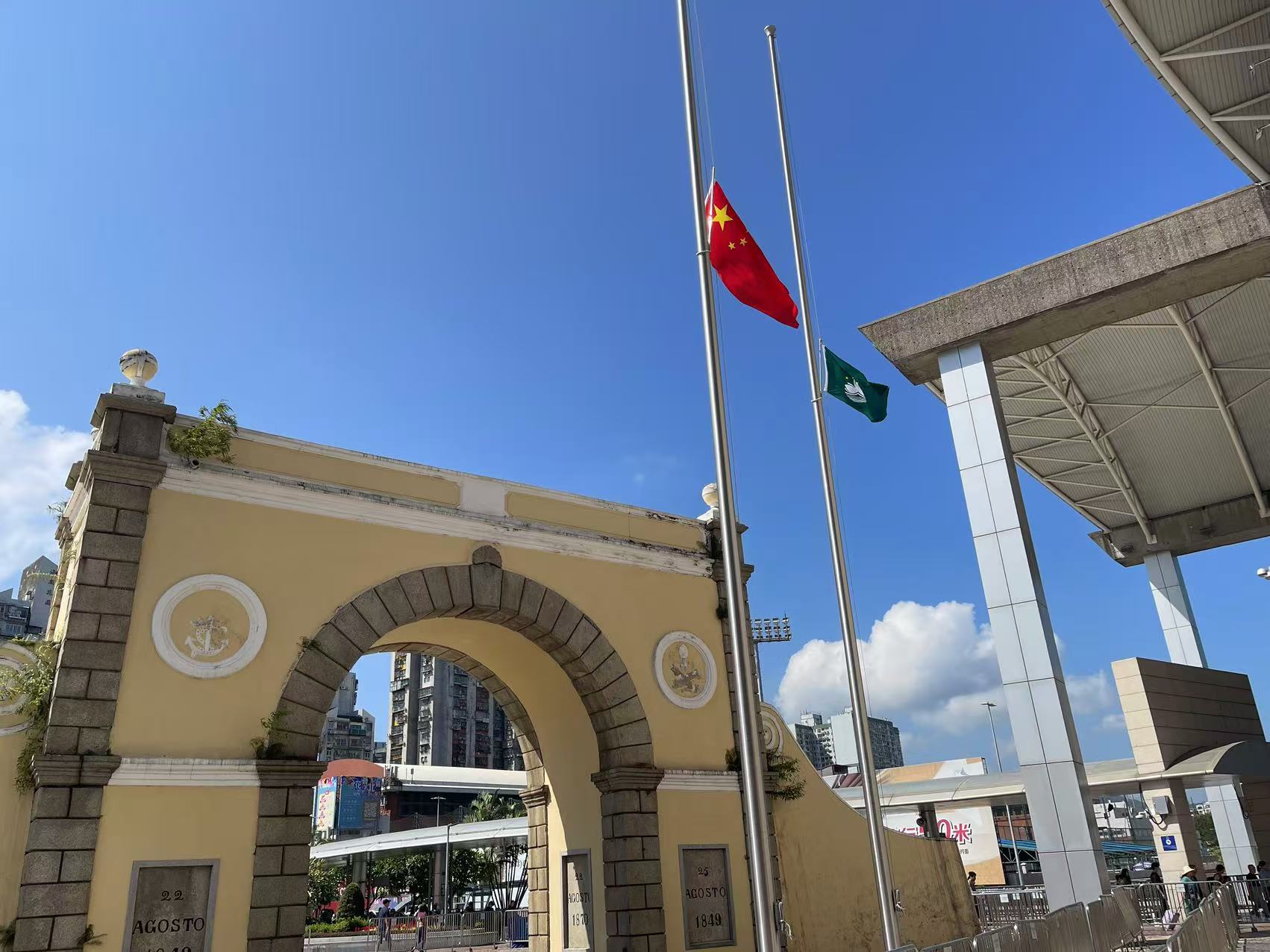 特區政府根據中央政府統一安排,特區政府總部、禮賓府、各邊境口岸、對外海空港口以及中央政府駐澳門聯絡辦公室大樓等中央駐澳機構下半旗誌哀。