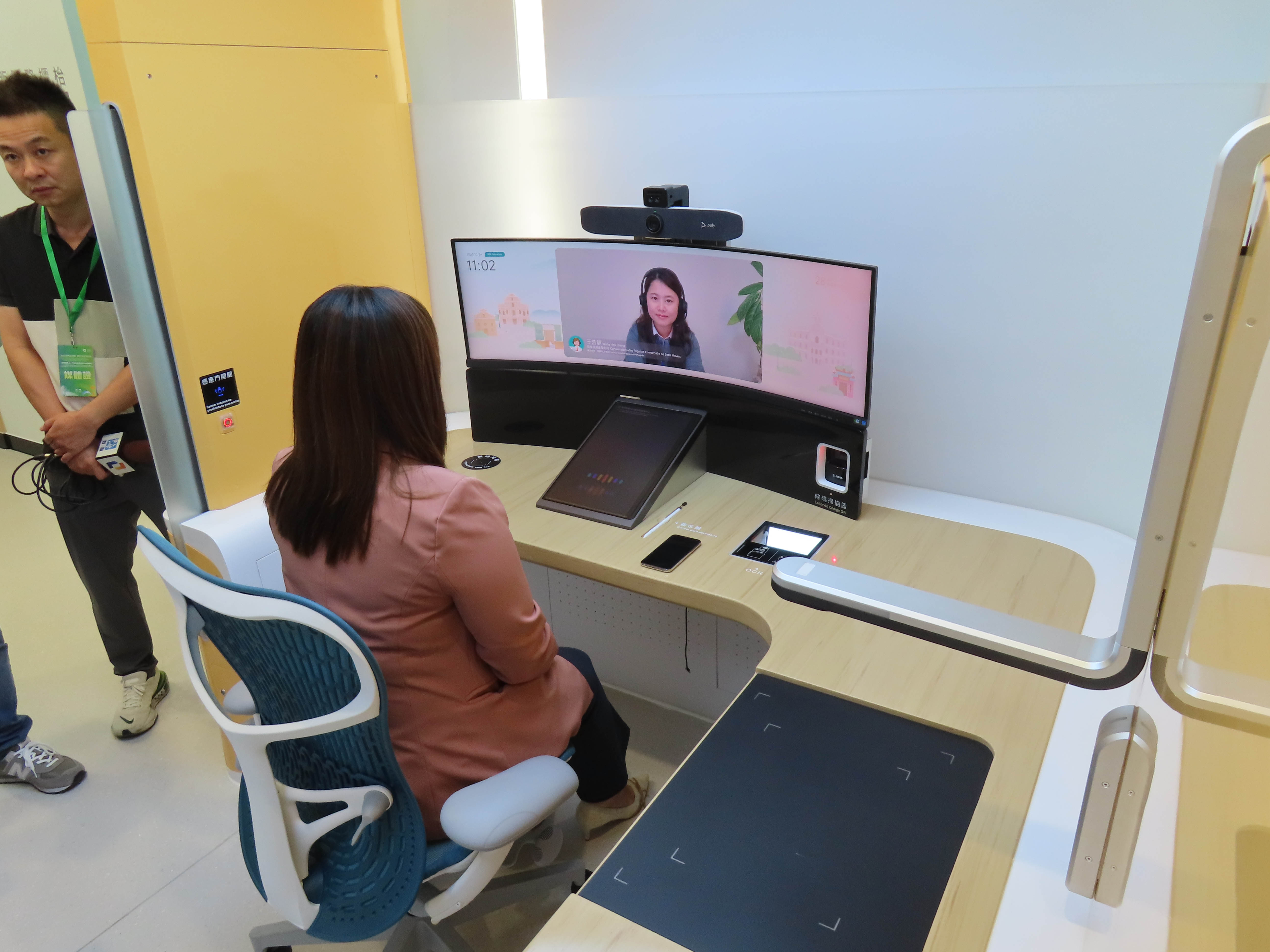 遙距服務櫃枱具備身份認證、文件掃描、資料傳遞和電子簽署等功能,並可由部門接待人員提供一對一在線導辦服務,既保留傳統櫃枱服務的互動性,又方便居民無需返回澳門辦理手續。現階段適用於身份證明局、法務局、市政署和行政公職局常用的諮詢和申請服務,特區政府將持續擴展適用範圍,有序納入不同部門的服務項目。需要使用遙距服務櫃枱的居民,可透過“一戶通”的“預約櫃枱服務”或“商社通”的“商社預約”選擇辦理時間。