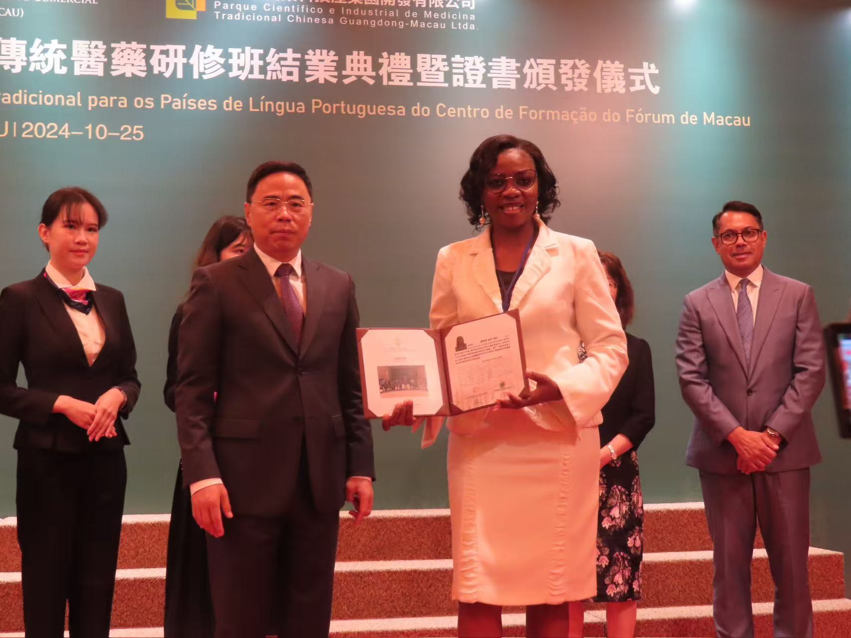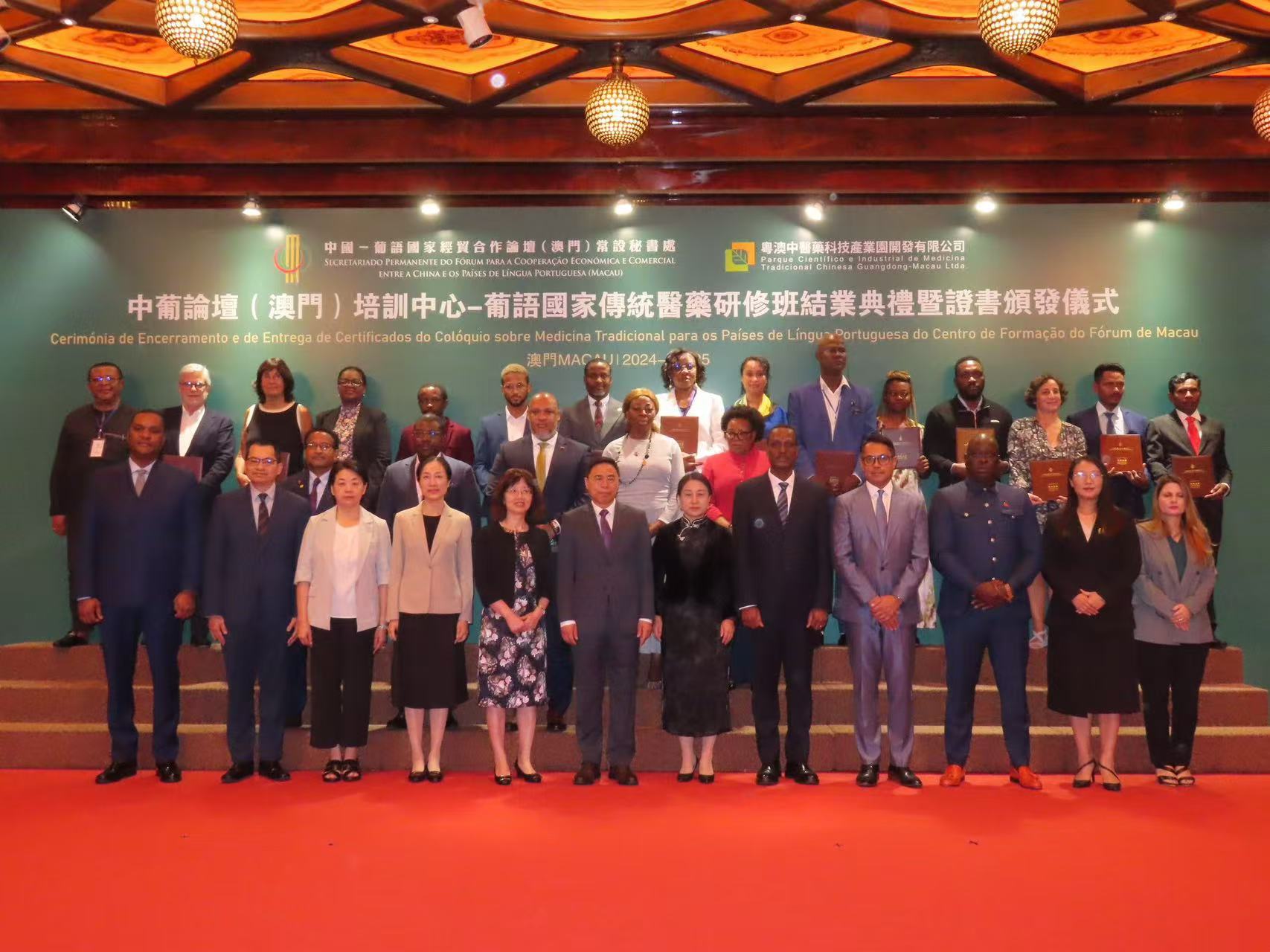 【即時新聞】由中葡論壇(澳門)培訓中心主辦、粵澳中醫藥科技產業園開發有限公司承辦的葡語國家傳統醫藥研修班今舉行結業典禮暨證書頒發儀式,本次研修班來自7個葡語國家的15名傳統醫藥及公共衛生領域的政府官員、技術專家等,在兩周的時間里,赴澳門、珠海、廣州、江門四地,對政府部門、大學實驗室、醫院、製藥企業等進行考察和座談。通過係系列活動深化學員對中醫藥文化、技術研發、臨床治療應用等方面的全面瞭解。