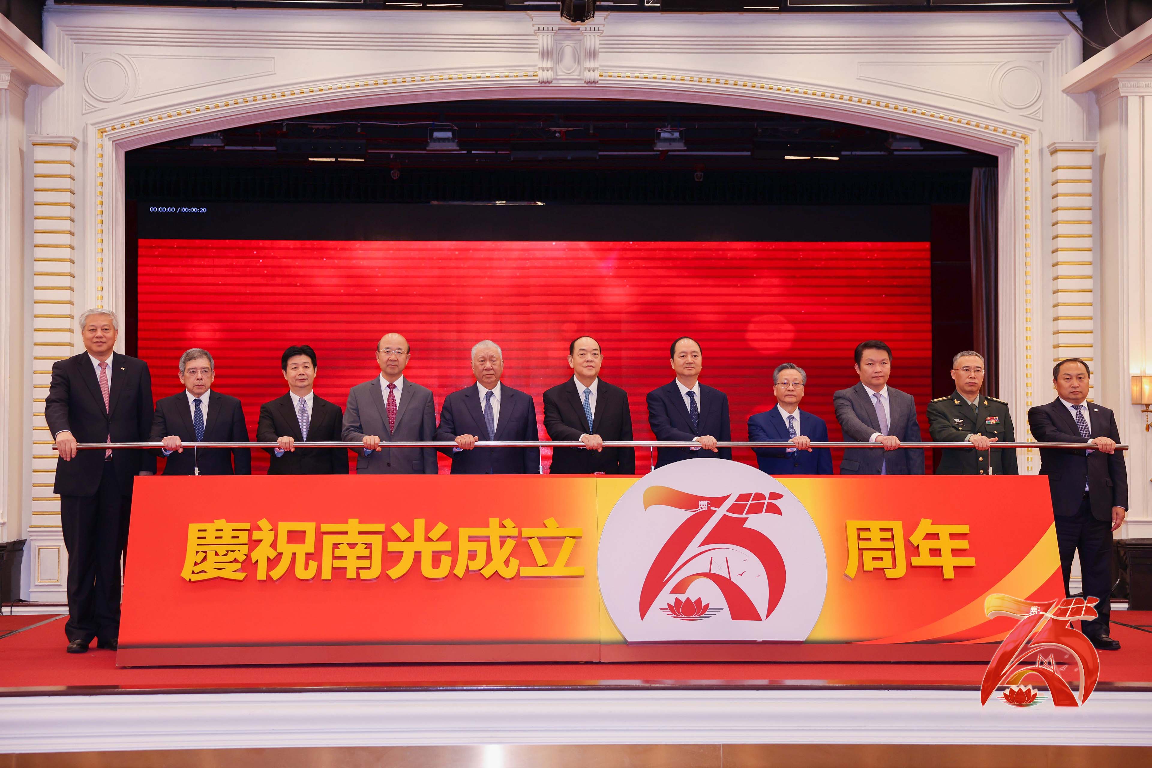 【即時新聞】南光集團舉辦慶祝中華人民共和國成立75周年、澳門回歸祖國25周年、南光成立75周年酒會,行政長官賀一誠、全國政協副主席何厚鏵、中聯辦主任鄭新聰、外交部駐澳特派員公署特派員劉顯法、立法會主席高開賢、中聯辦副主任呂玉印、經濟財政司司長李偉農、運輸工務司司長羅立文、解放軍駐澳部隊保障部部長張春棟及南光集團董事長傅建國、總經理姜維亮,以及特區政府、中聯辦、社會各界代表,以及新聞媒體代表等逾400名嘉賓出席。