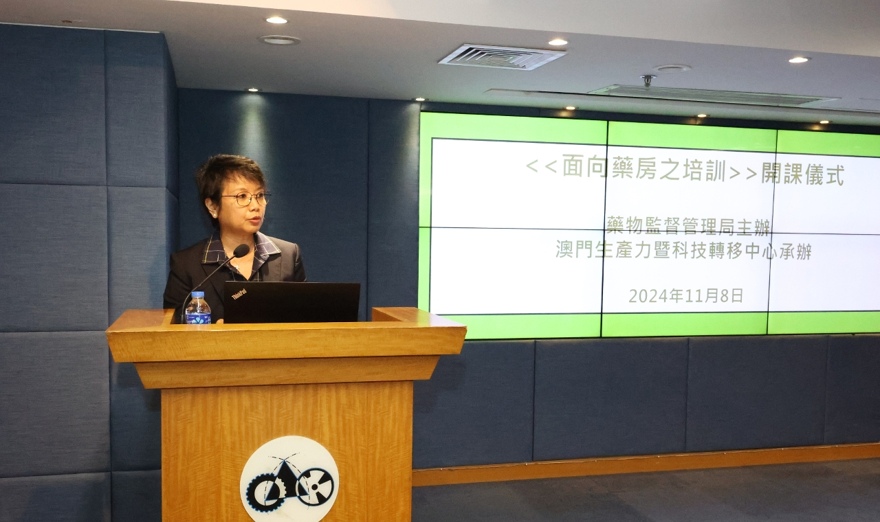 【即時新聞】由藥物監督管理局主辦、澳門生產力暨科技轉移中心承辦的《面向藥房的培訓課程》於本年11月8日及14日舉辦,並於8日舉行了簡單而隆重的開班儀式。