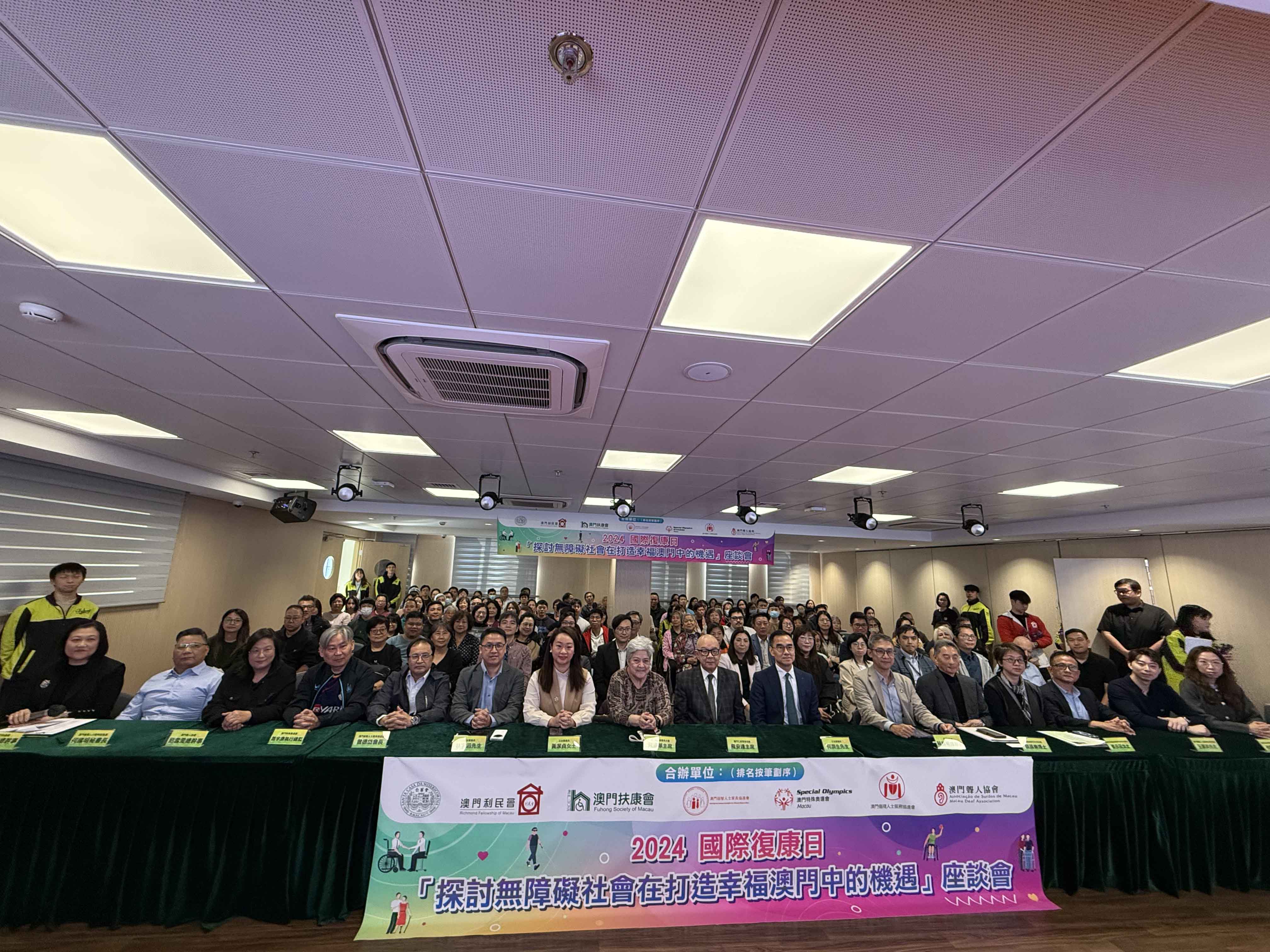 【即時新聞】為響應12月3日國際復康日,澳門仁慈堂、澳門利民會、澳門扶康會、澳門弱智人士家長協進會、澳門特殊奧運會、澳門傷殘人士服務協進會及澳門聾人協會七個復康單位於合辦「2024 國際復康日『探討無障礙社會在打造幸福澳門中的機遇』座談會」,座談會匯聚了立法議員、教授、律師、建築師等多個領域的專家學者、社服同工、社工專業學生及服務使用者家屬,共計100多人參與。與會者共同探討了無障礙社會在打造幸福澳門中的機遇,旨在持續提升澳門社會的包容性和友好度。
