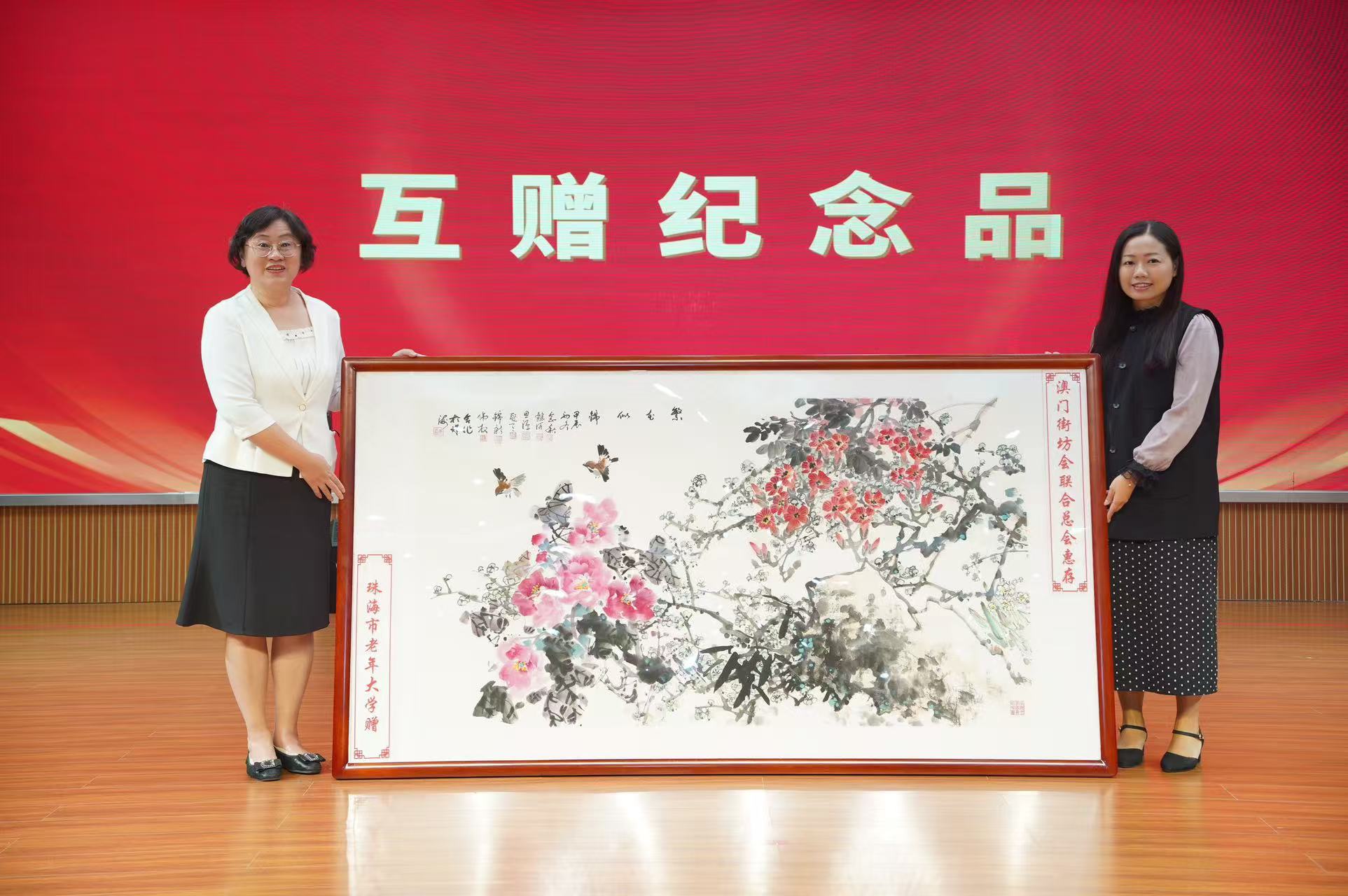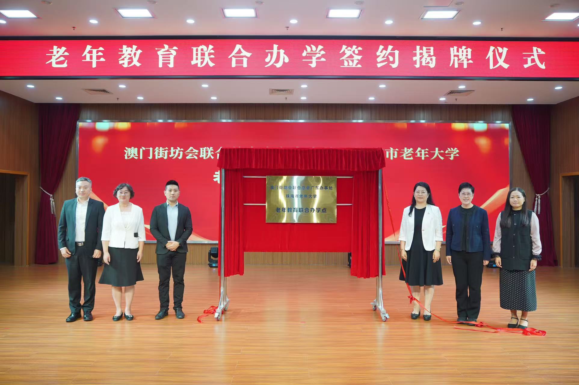 儀式上,珠海市老年大學、街總廣東辦事處、珠海市香洲區境海坊眾教育培訓有限責任公司簽訂老年教育聯合辦學合作協議,主禮嘉賓共同為“澳門街坊會聯合總會廣東辦事處 珠海市老年大學老年教育聯合辦學點”揭牌。