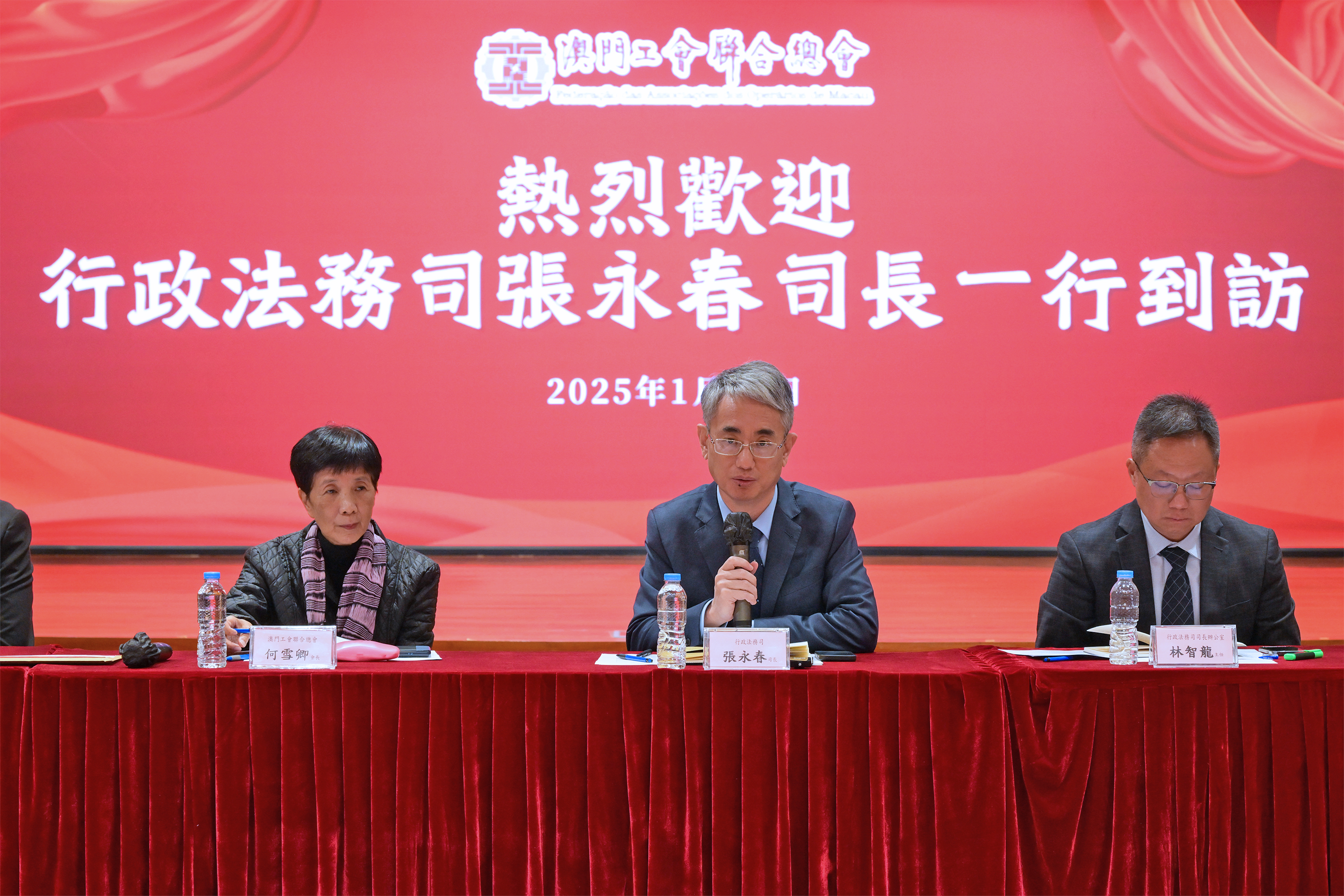 【即時新聞】行政法務司司長張永春今(13)日到訪澳門工會聯合總會並舉行座談,聽取該會就行政法務範疇本年度施政工作提出的意見和建議。