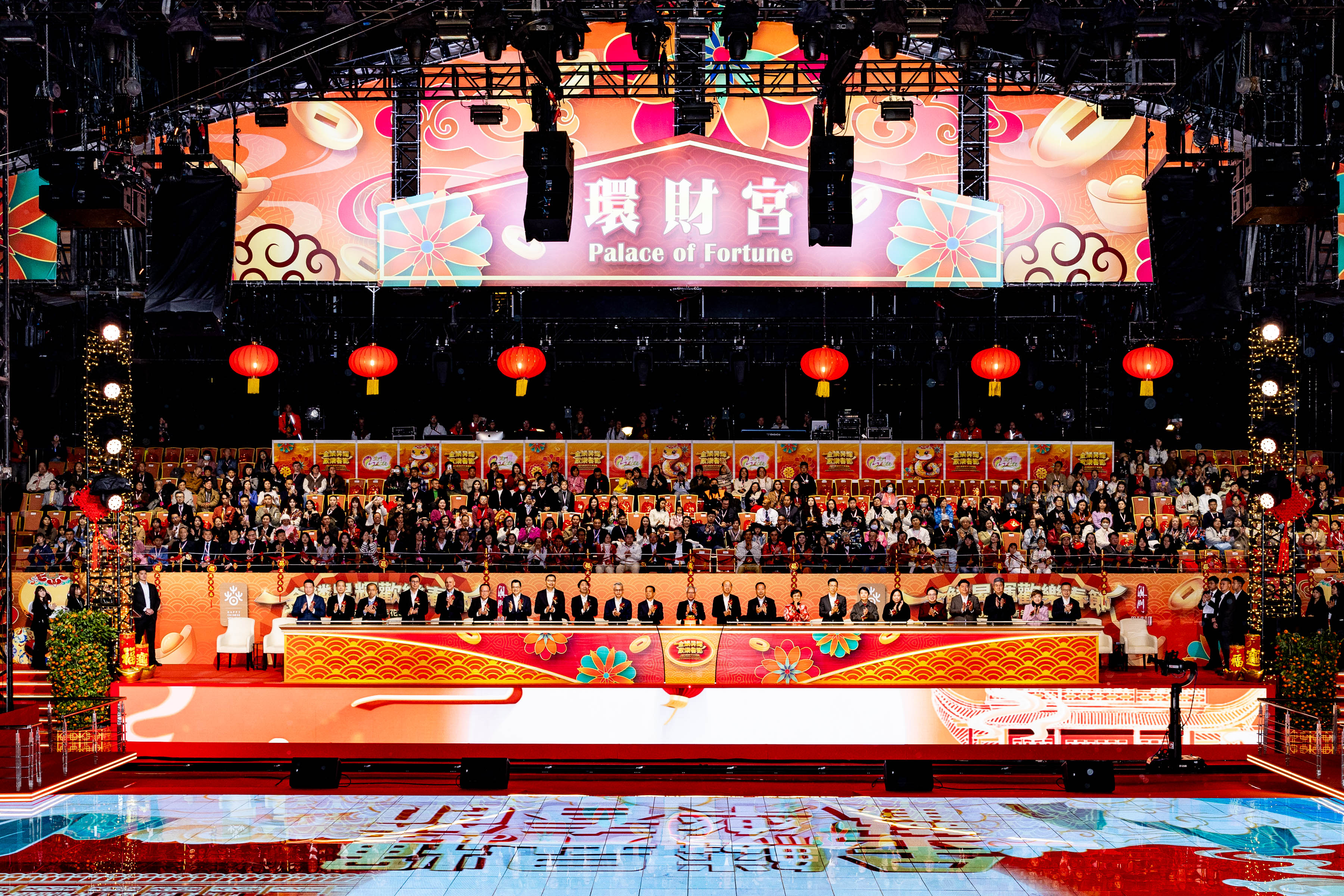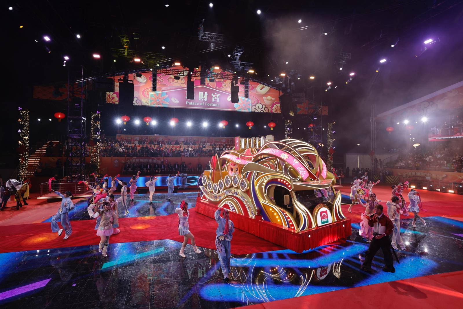 港澳人氣主持人周奕瑋、古淖文與宋宛穎擔任司儀,香港藝人張振朗、丁子朗和姚焯菲等傾力獻唱。17部花車與來自海內外約1,300名表演者一一亮相,壓軸登場的旅遊局花車更首次在主舞台中央進行360度展示,讓觀眾全方位欣賞花車的精心設計,加上香港歌手魏浚笙和女子組合Beanies的精彩表演,將現場氣氛推至高峰。熠熠生輝的花車按路線巡遊,加上藝團精彩表演,沿途獲居民和旅客熱烈歡迎。