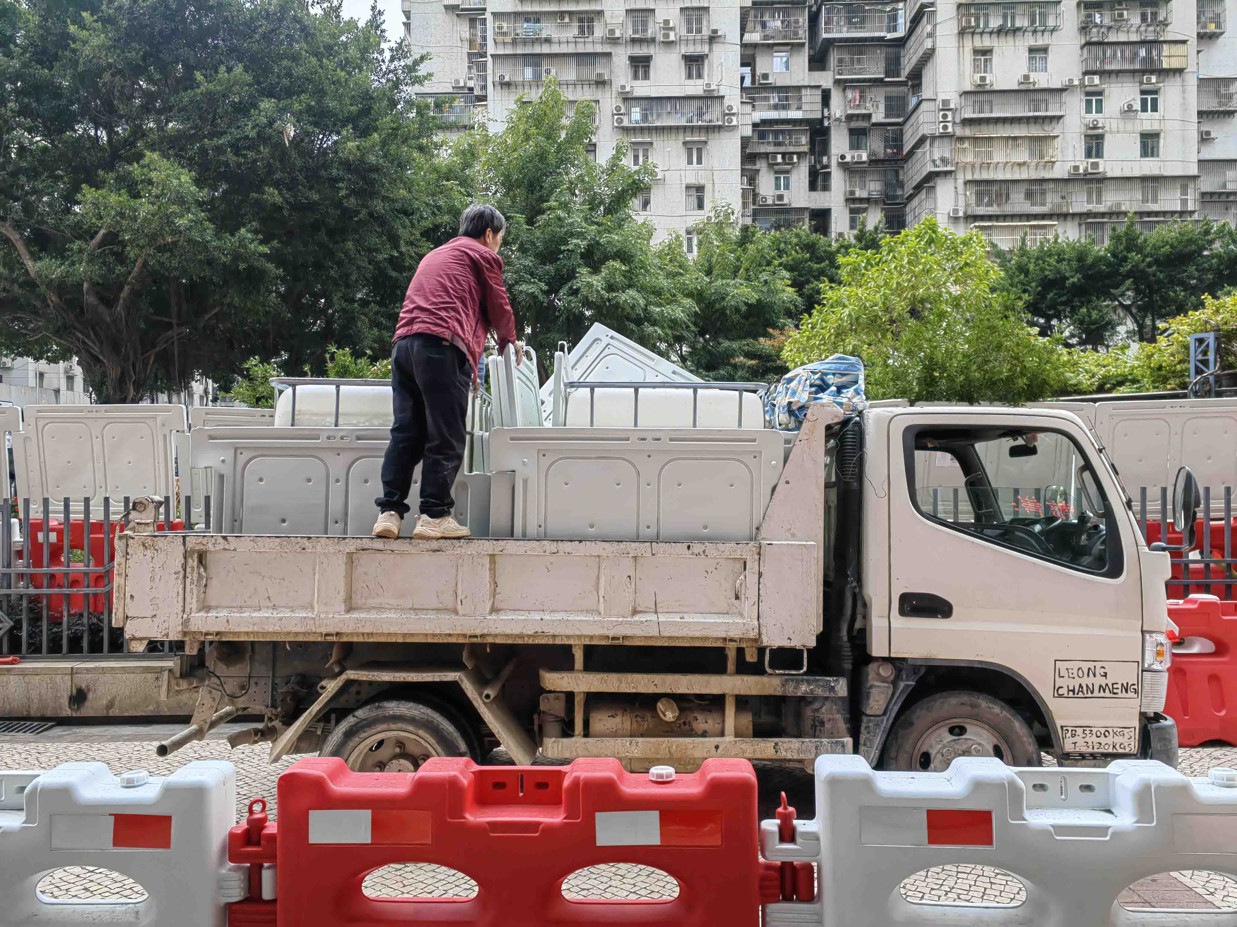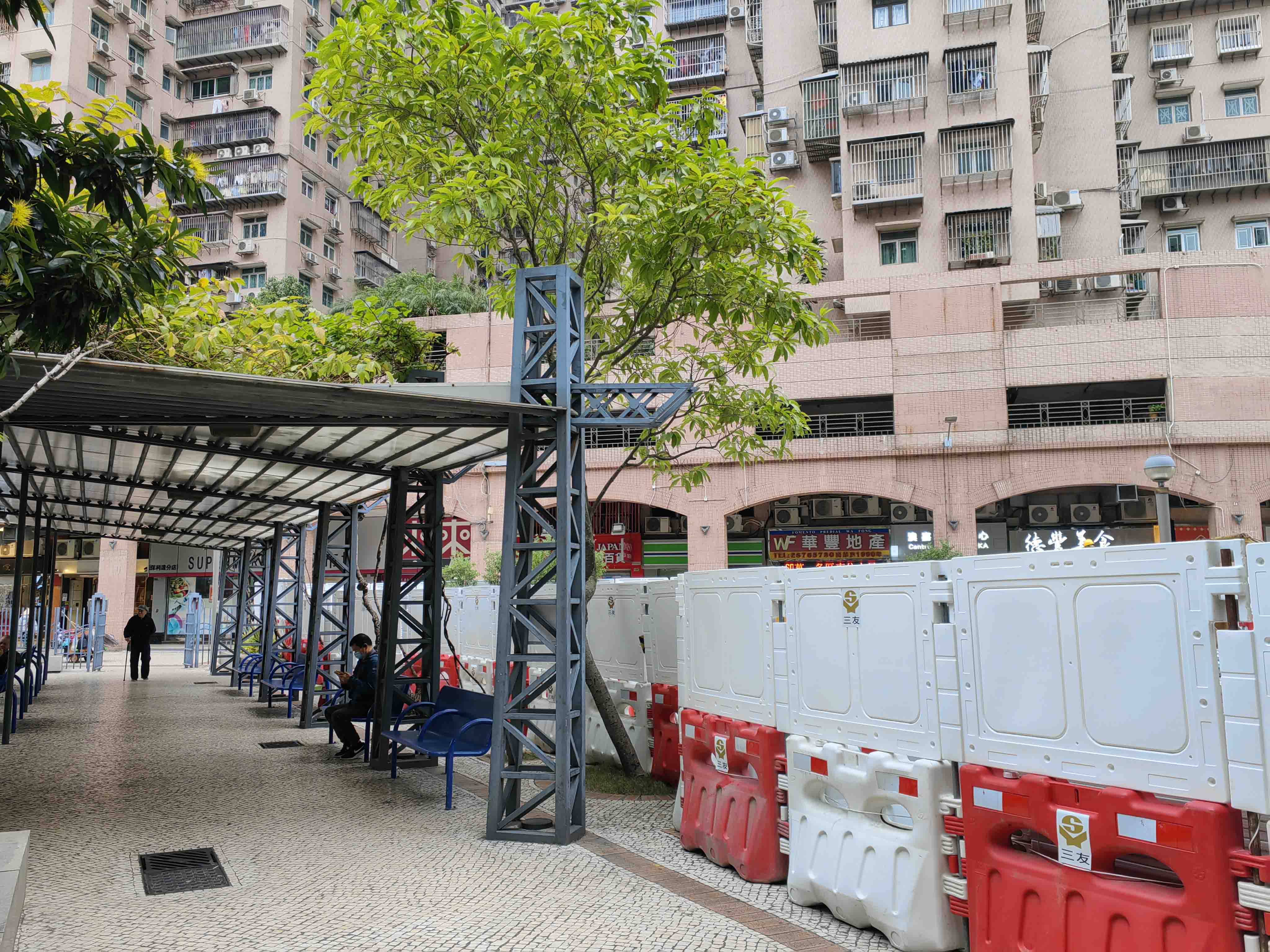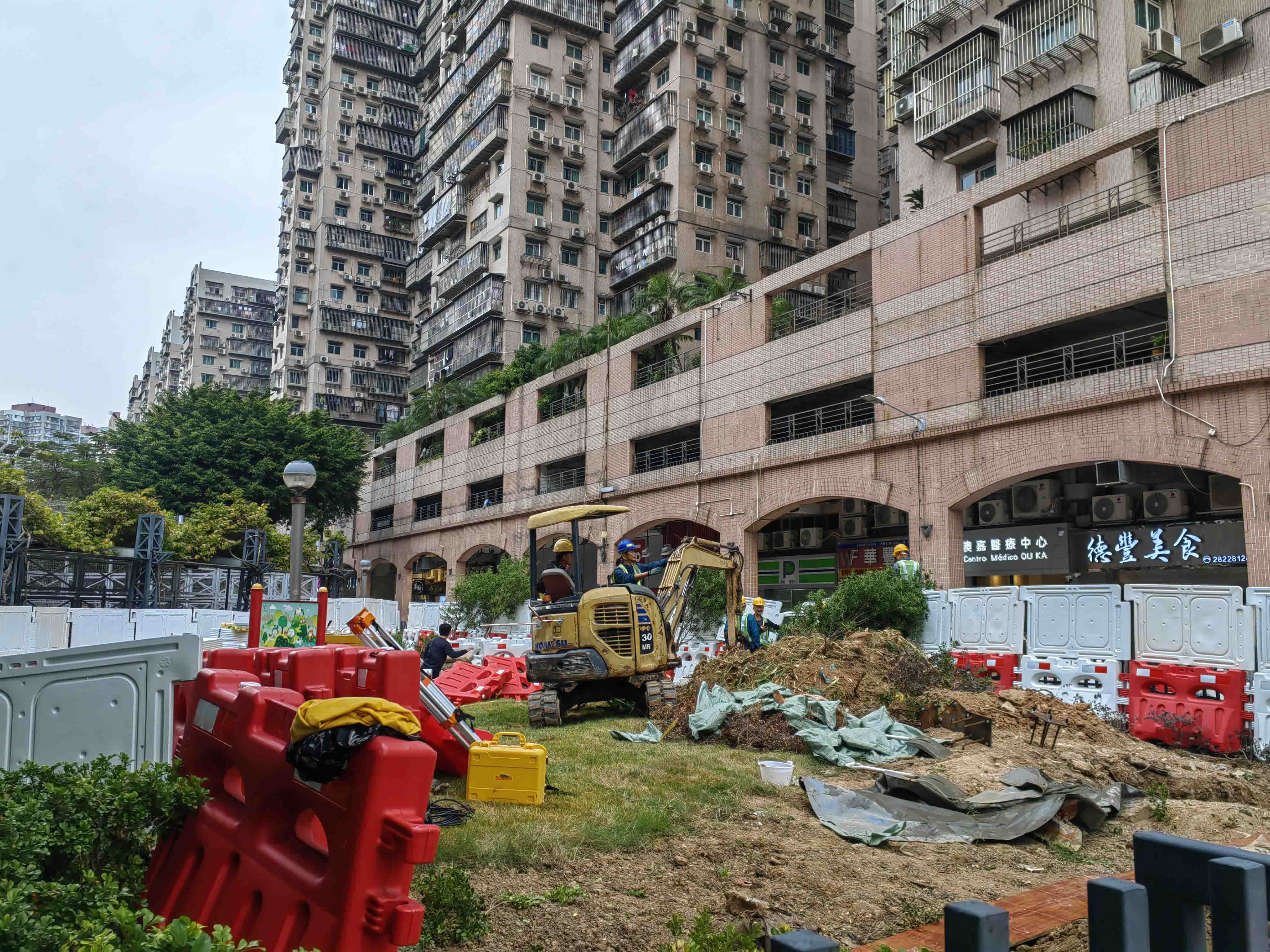 記者下午所見,工作人員以水馬及圍板圍封黑沙街公園近海名居一角,場內有工作人員操作機械設備作業,圍板張貼交通局的通告,內容顯示:公共建投局DSOP-探坑工作,承建商為三友建築-新基業合作經營,工程由2月5日至2月27日;因進行探坑工作,於本年2月5日至15日東北大馬路近海名居的路段,以及於本年2月17日至27日東北大馬路近勞動節大馬路的路段,道路將實施有限度通車,敬請駕駛者遵守路上所設置之臨時交通標誌,服從交通警員之指揮。同時,承建商亦在圍板上張貼二維碼,收集工地現場施工及管理的投訴或意見。