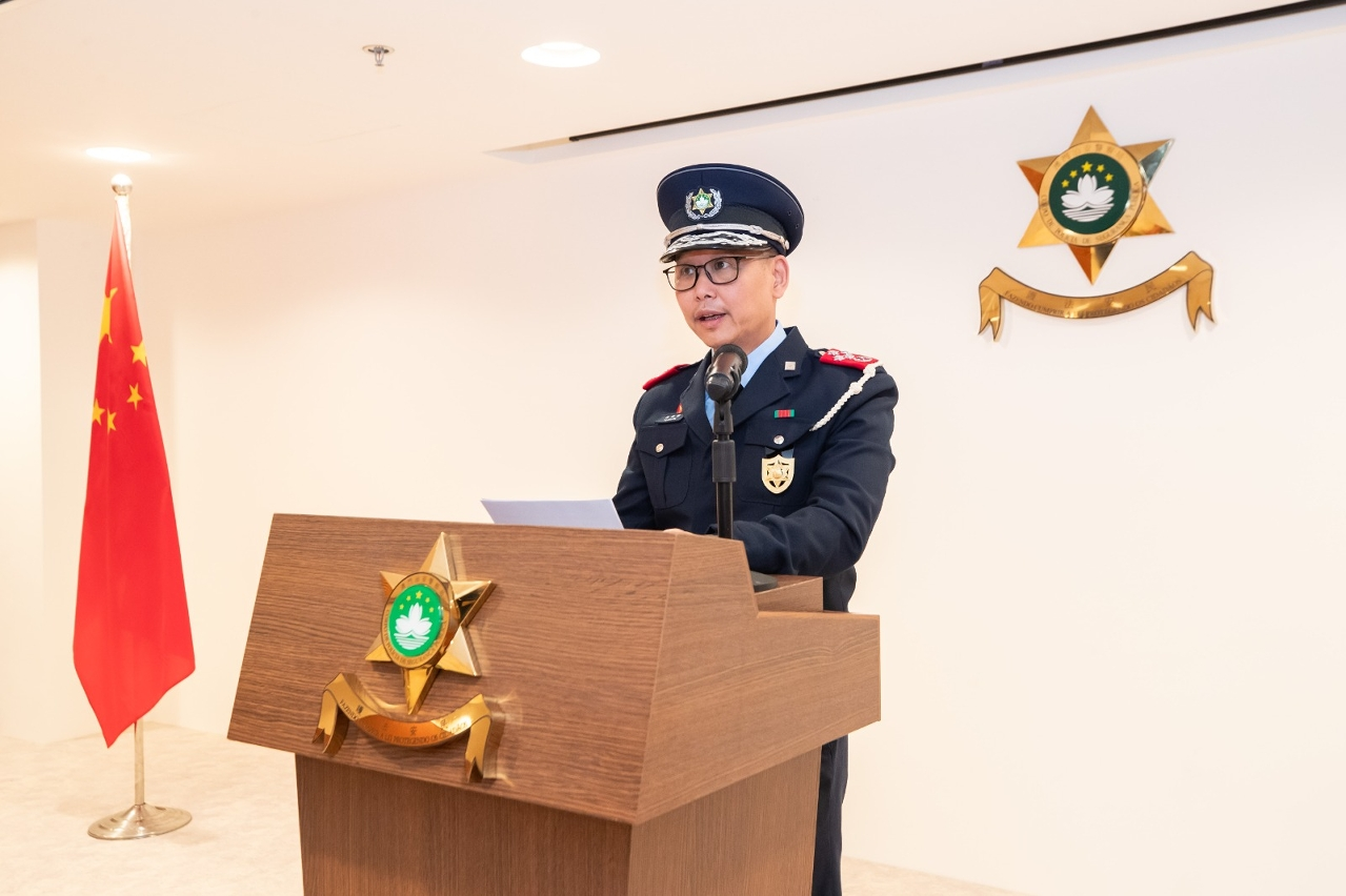 吳錦華局長在儀式上祝賀獲晉升的警官,並對他們過往的工作表現予以肯定;同時勉勵他們要堅守初心,牢記使命,嚴格履行法定職責,樹立大局意識,強化實幹擔當,堅定不移地配合特區政府的各項工作,堅持忠誠為民、守法奉公、勇於創新,持續提升治安警管理水平,以更積極主動的姿態防範各類危害國家安全和社會穩定的風險隱患,全力維護國家安全,以及為澳門長治久安保駕護航。