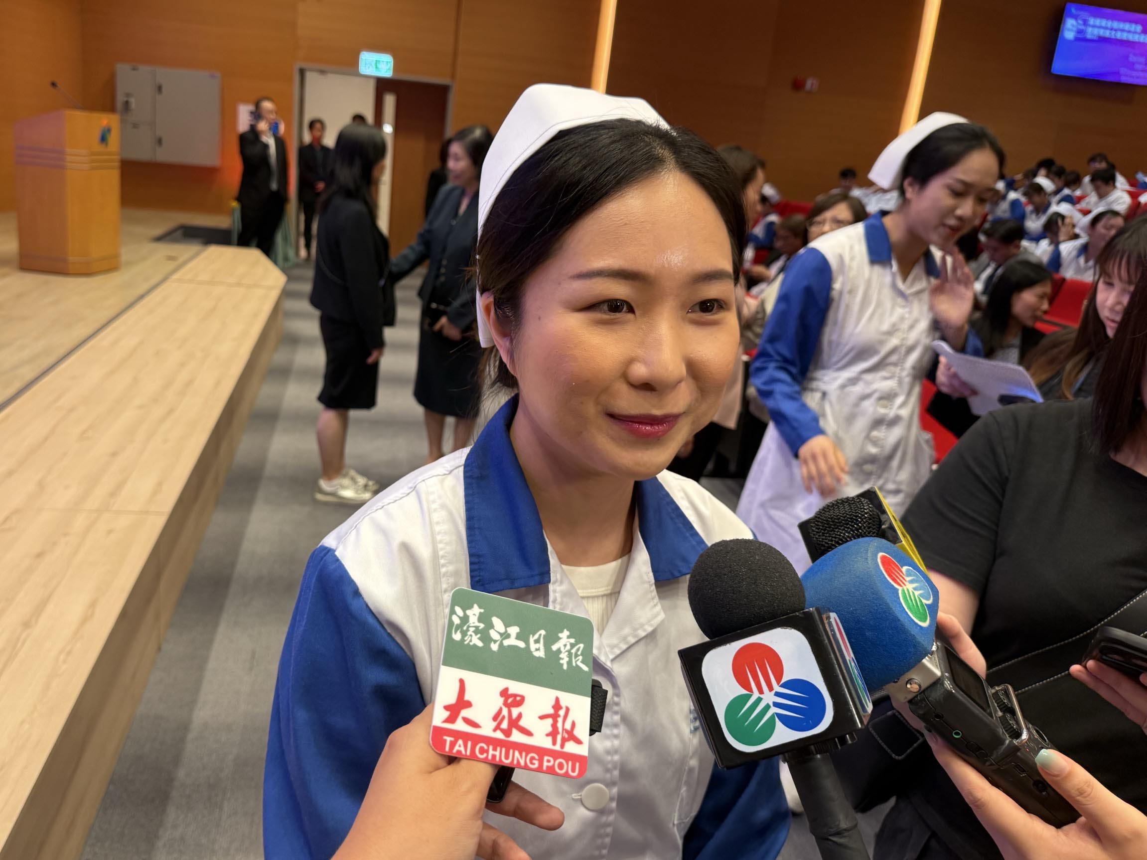 儀式上,資深護理專家及教育工作者為護理專業三年級本科學生戴上潔白的護士帽,院長尹一橋指出,全球護理人力缺口持續擴大,澳門同樣面臨專業護理人才供不應求的挑戰。她強調護理專業不僅是守護全民健康的基石,更是推動社會經濟可持續發展的關鍵力量。關懷護士、健全護理人力資源,對於強化經濟韌性、提供關懷與優質護理、優化醫療體系、保障社區永續健康至關重要。