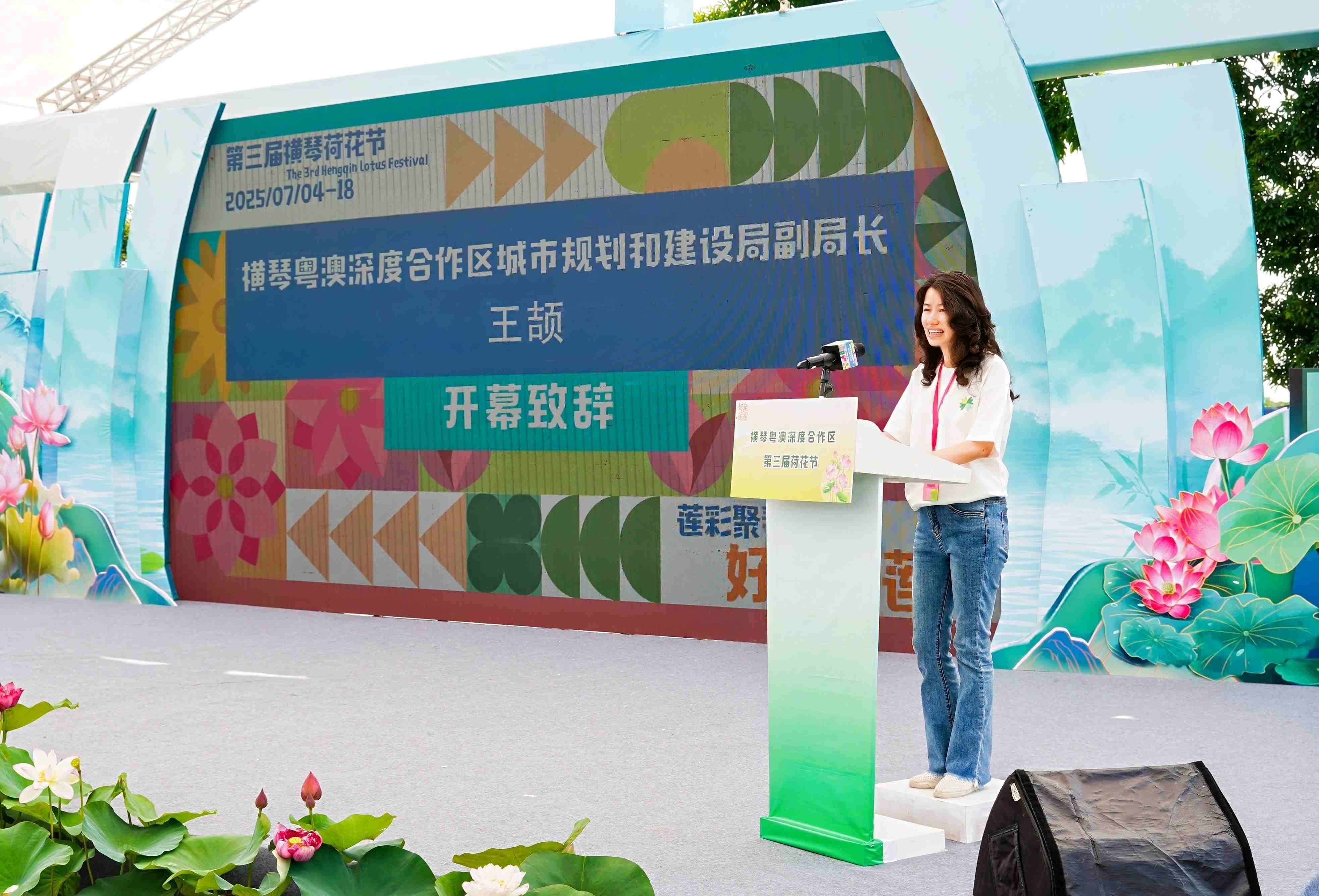 王頡致辭表示,橫琴荷花節作為展示琴澳生態之美與文化底蘊的重要窗口,已成功舉辦兩屆。活動在深化琴澳文化交流、豐富群眾精神文化生活方面發揮了積極作用,已然成為推動琴澳協同發展的特色品牌。希望以荷花節為紐帶,厚植生態文明理念,搭建琴澳交流平台,促進兩地民心相通、情誼相融。展望未來,我們將始終以習近平總書記視察廣東、澳門時的重要講話和重要指示精神為指引,錨定「澳門+橫琴」的發展定位,保持戰略定力,以久久為功的韌勁推進合作區建設。聚焦打造優質生活圈,攜手澳門深化合作,奮力開創橫琴粵澳深度合作區建設新局面。