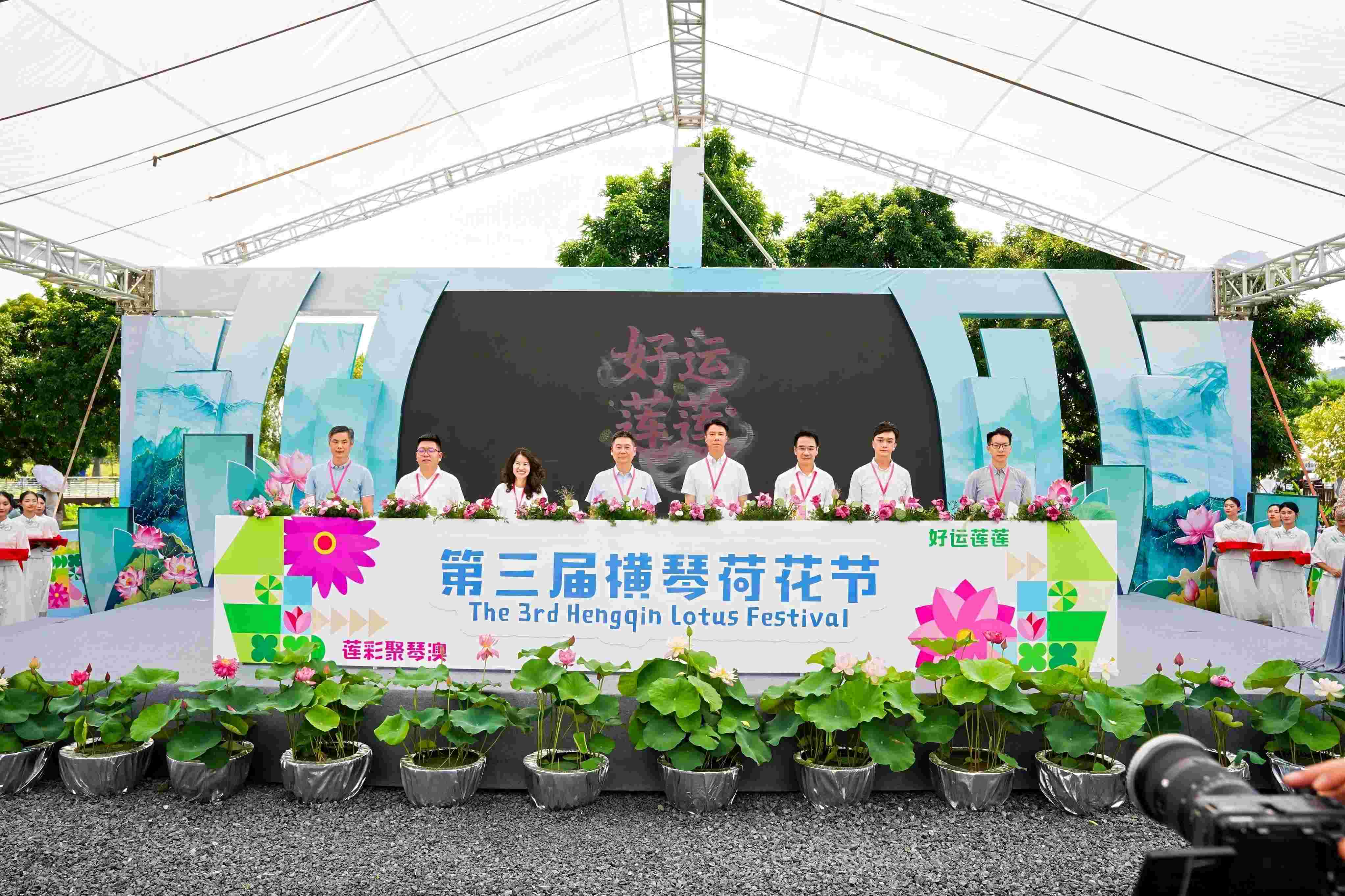 第三屆橫琴荷花節開幕儀式於今日早上10時在橫琴荷花園舉行,橫琴深合區城市規劃和建設局局長張國基、副局長王頡,澳門市政署園林綠化廳代廳長陳海峰,橫琴深合區金融發展局副局長鮑偉春,橫琴深合區城市規劃和建設局市政管理署代理署長梅曉,橫琴深合區行政事務局綜合事務處處長梁偉鑾,澳門市政署園林綠化廳自然保護研究處代處長陳凱豪,廣州市嘉卉園林綠化建築工程有限公司黨支部書記、執行董事王瑋等嘉賓出席並主禮。