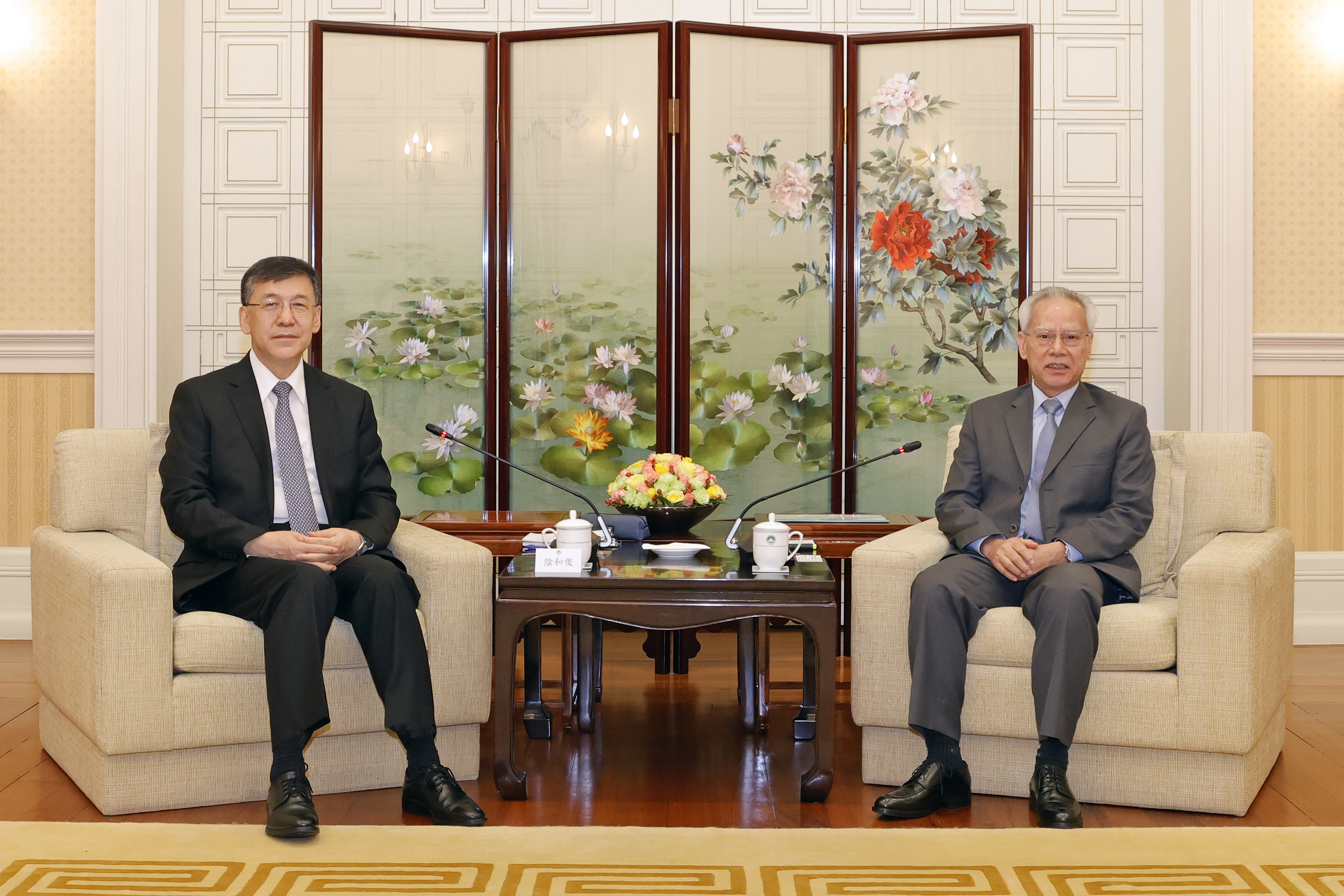 【即時新聞】行政長官岑浩輝今(26)日在政府總部與國家科技部部長陰和俊會面,就深化內地與澳門的科研合作進行深入交流。