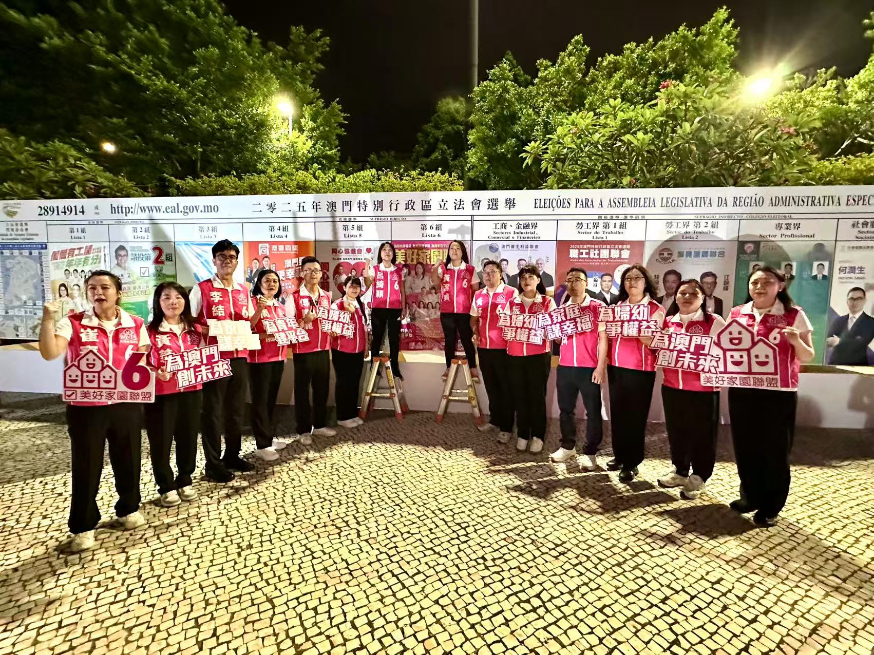 與上屆選舉不同,今屆競選活動已無防疫限制,惟由於參選組別減少,加上各團隊競選策略有所調整,現場沒見以往人山人海、熱鬧喧騰的「搶貼潮」場面,整體氣氛相對平穩有序。儘管如此,塔石廣場的宣傳看板仍為各組別爭相搶佔的首選張貼之處,包括直選組別「新希望」、「澳粵同盟」、「美好家園聯盟」,以及參與間選的工商、金融界「澳門僱主利益聯會」、勞工界第一組「職工社團聯會」、勞工界第二組「僱員團體聯合」、專業界「澳門專業利益聯會」、文化及體育界的「旭昇文體聯合會」均齊聚於此打響頭炮。亦有部分資深選團避開熱點區域,例如「澳門民聯協進會」選擇在祐漢公園、「群力促進會」和參與間選的社服及教育界「社會服務教育促進會」於青洲坊蓮花廣場、「同心協進會」則在其大本營附近的關閘張貼海報及政綱,將選舉氣氛擴至社區。