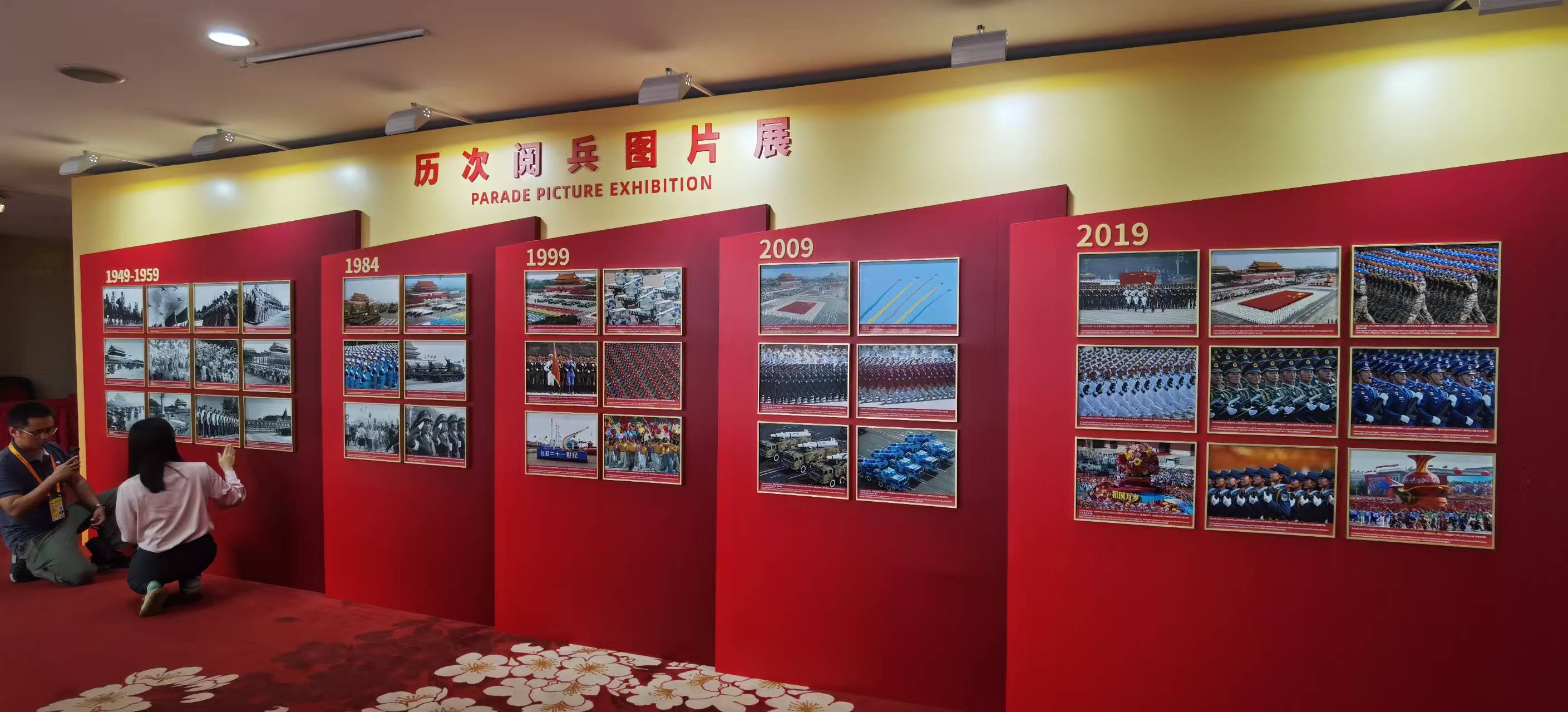 新聞中心二層多功能廳被改造為新聞發佈廳,活動期間舉辦三場記者招待會和三場記者見面會。另外,二層還展出「新中國歷次閱兵圖片展」,吸引不少中外記者駐足觀看,從黑白到彩色的珍貴歷史照片,深刻彰顯了中國人民銘記歷史、緬懷先烈、珍愛和平、開創未來的堅定決心。