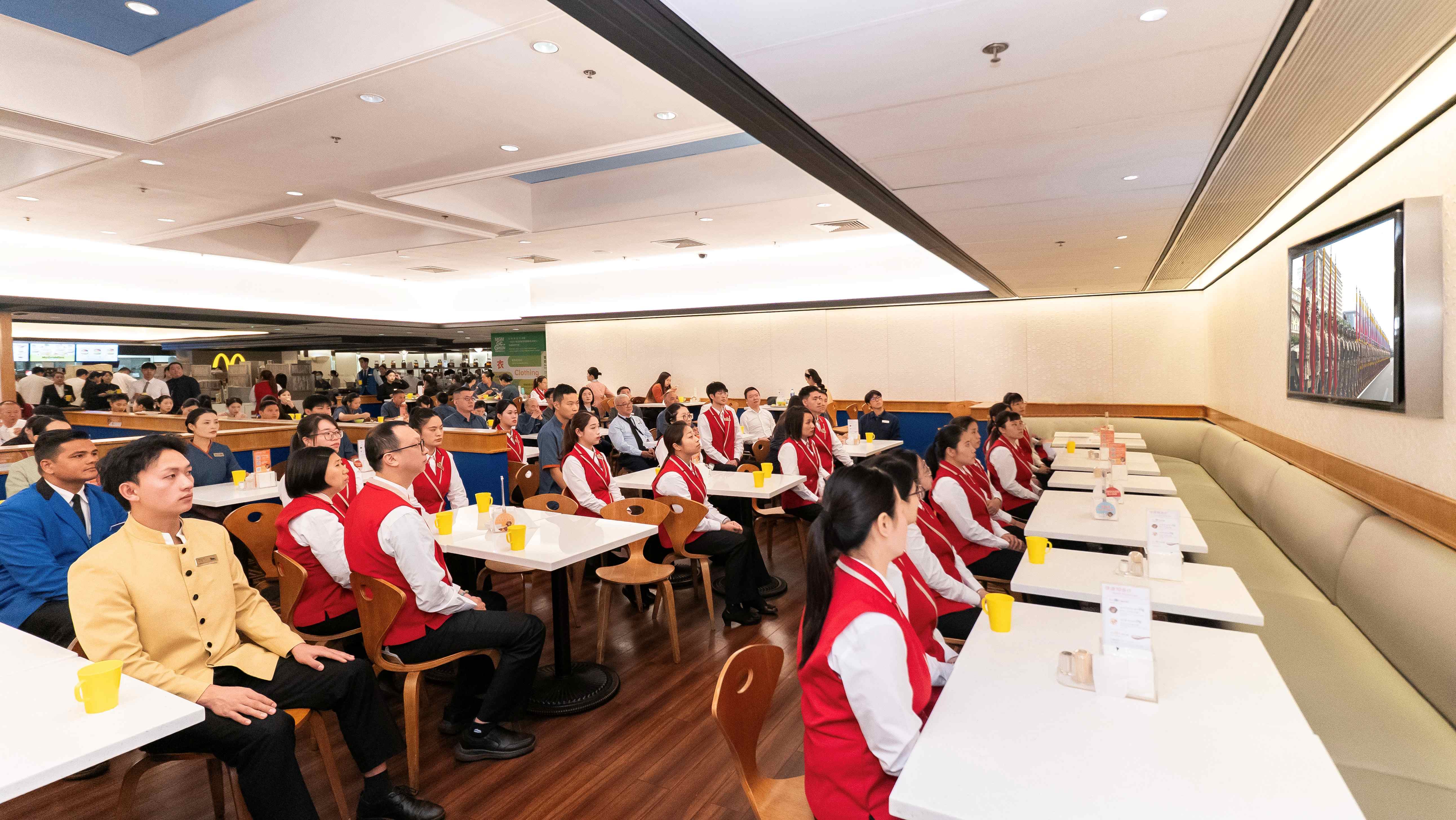 【即時新聞】為銘記歷史、弘揚愛國精神,美高梅於紀念中國人民抗日戰爭暨世界反法西斯戰爭勝利80周年之際,持續透過多元方式深化團隊成員對國情的認識,厚植家國情懷。美高梅今日於旗下兩家酒店——澳門美高梅及美獅美高梅的員工餐廳及後勤區所有電視屏幕直播北京天安門舉行之「紀念中國人民抗日戰爭暨世界反法西斯戰爭勝利80周年大會」,讓成員們有機會共同見證這一具有重大歷史意義的時刻,感受祖國的繁榮與強大。