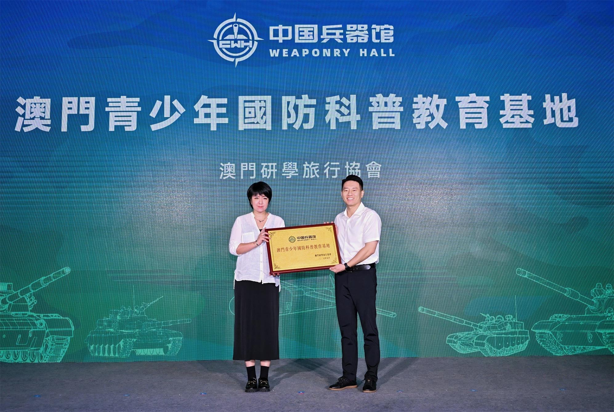 珠海市關心下一代工作委員會、珠海市科技創新局、珠海市科學技術協會、澳門研學旅行協會分別向中國兵器館授予“珠海市關心下一代研學實踐基地”“珠海市科普教育基地”“澳門青少年國防科普教育基地”牌匾。