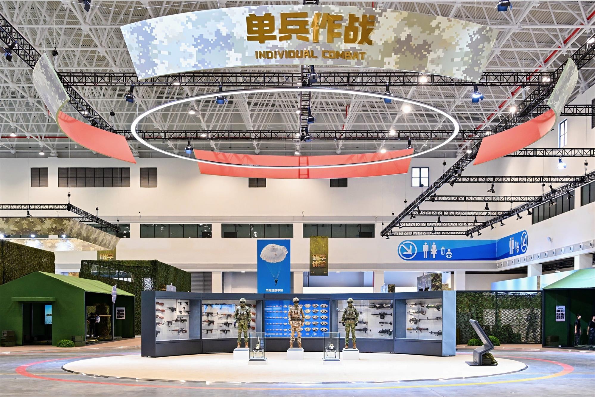 中國兵器館位於珠海國際航展中心9-10號館,總布展面積達1.24萬平方米,館內陳列眾多極具歷史價值與科技含量的國防裝備和沉浸式的軍事互動體驗項目。室外展陳區域主要展示坦克、裝甲車、火炮等退役裝備;室內展陳區域分為機動突擊、火力打擊、破甲攻堅、末端防禦、智慧彈藥、單兵作戰六大板塊,主要展示陸軍輕型坦克和重型步兵戰車;新中國自主研製的首款大口徑功勳火炮、國際領先的車載加榴炮與多管火箭炮系統;反坦克導彈、自行防空系統;無人機、巡飛彈等,觀眾可近距離接觸坦克、裝甲車、導彈車、無人機、冷熱兵器等多種武器裝備,感受“大國重器”的震撼與魅力。同時,場館內廣泛引入先進展陳技術,拓展實景模擬、交互體驗等功能,規劃設置了坦克駕駛、單兵跳傘、防衛戰術體驗等18個互動體驗項目,通過前沿科技的深度融合,增強觀眾參與感與沉浸感,為觀眾構建身臨其境的“真實戰場”,體驗挑戰極限的樂趣與快感。